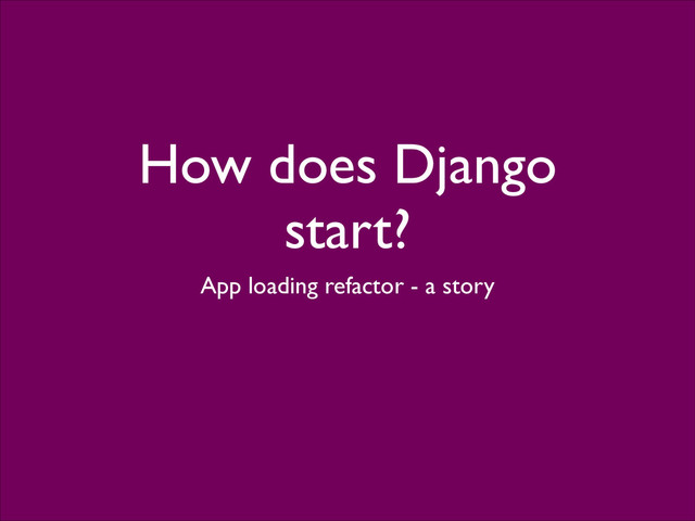 model is imported • ModelBase.__new__() triggers django.db.models.loading.AppCache initialization • Reverse relations now work • Most other bits of code inspect settings.INSTALLED_APPS directly