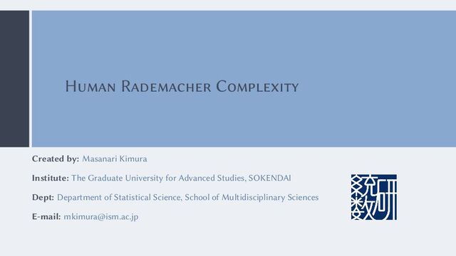 … , 𝑥𝑛 drawn i.i.d. from 𝑃𝑋 . ⊚ Generate 𝑛 random variables 𝜎1, … , 𝜎𝑛 ∈ {−1, +1}. Definition (Rademacher complexity) For a set of real-valued functions F with input space X, a distribution 𝑃𝑋 on X, and sample size 𝑛, the Rademacher complexity 𝑅(F, X, 𝑃𝑋 , 𝑛) is 𝑅(F, X, 𝑃𝑋 , 𝑛) = 𝔼 𝑥1 ,…,𝑥𝑛 ∼𝑃𝑋 𝜎1 ,…,𝜎𝑛 ∼𝐵𝑒𝑟(1/2) [sup 𝑓 ∈F | 2 𝑛 𝑛 ∑ 𝑖=1 𝜎𝑖 𝑓 (𝑥𝑖 )|] , (1) where 𝜎1 … , 𝜎𝑛 ∼ 𝐵𝑒𝑟(1/2) with values ±1. 5 ʢ 23