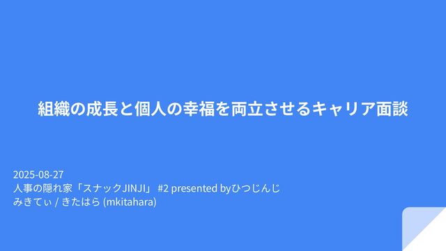 組織の成⻑と個⼈の幸福を両⽴させるキャリア⾯談 2025-08-27 ⼈事の隠れ家「スナックJINJI」 #2 presented byひつじんじ みきてぃ / きたはら (mkitahara)