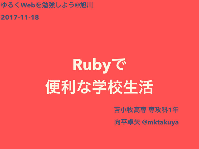 RubyͰ ศརͳֶߍੜ׆ খߴઐ ઐ߈Պ1 ฏ @mktakuya ΏΔ͘WebΛษڧ͠Α͏@Ѵ 2017-11-18
