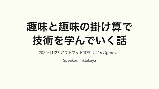 झຯͱझຯͷֻ͚ࢉͰ ٕज़ΛֶΜͰ͍͘ 2020/11/27 Ξτϓοτڞ༗ձ #16 @grooves Speaker: mktakuya