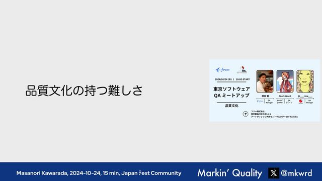 ࣭จԽͷ࣋ͭ͠͞ Masanori Kawarada, 2024-10-24, 15 min, Japan ũest Community @mkwrd