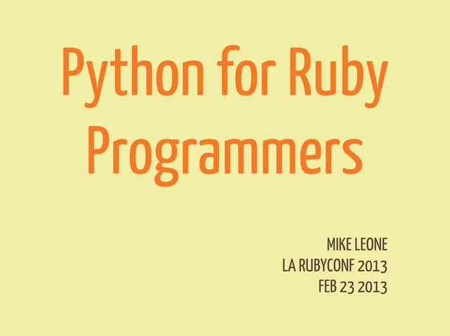 A presentation comparing the Python and Ruby programming languages. I gave this talk at LA RubyConf 2013.