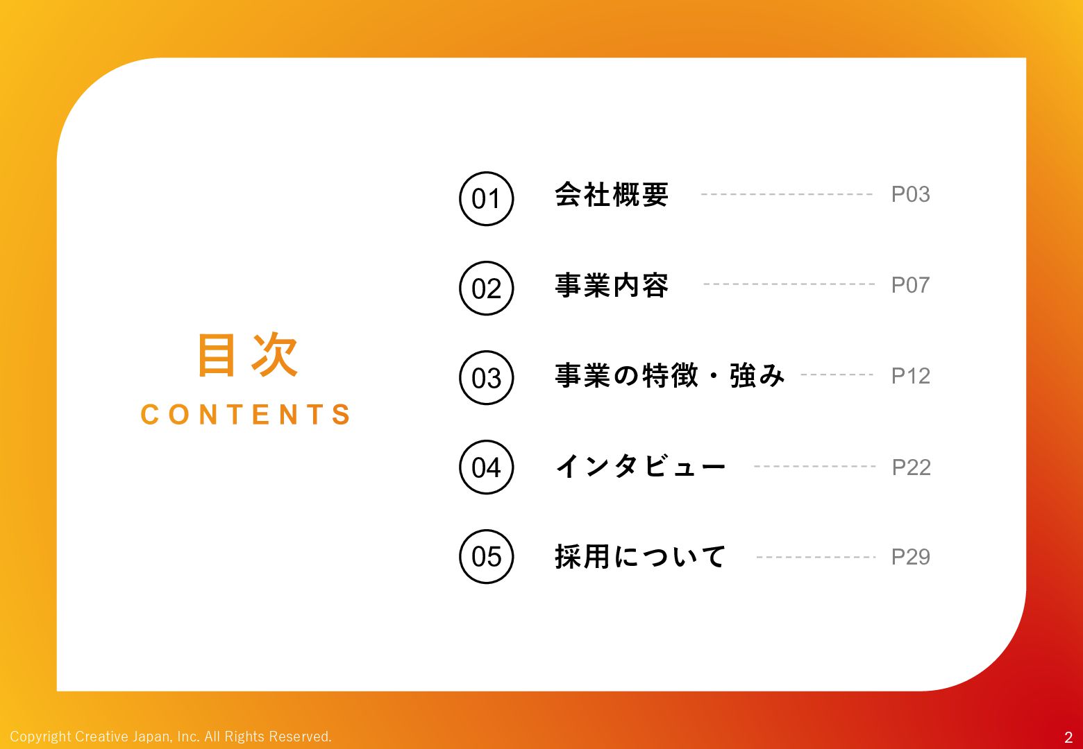 1. Copyright Creative Japan, Inc. All Rights Reserved. 01 会社概要 02