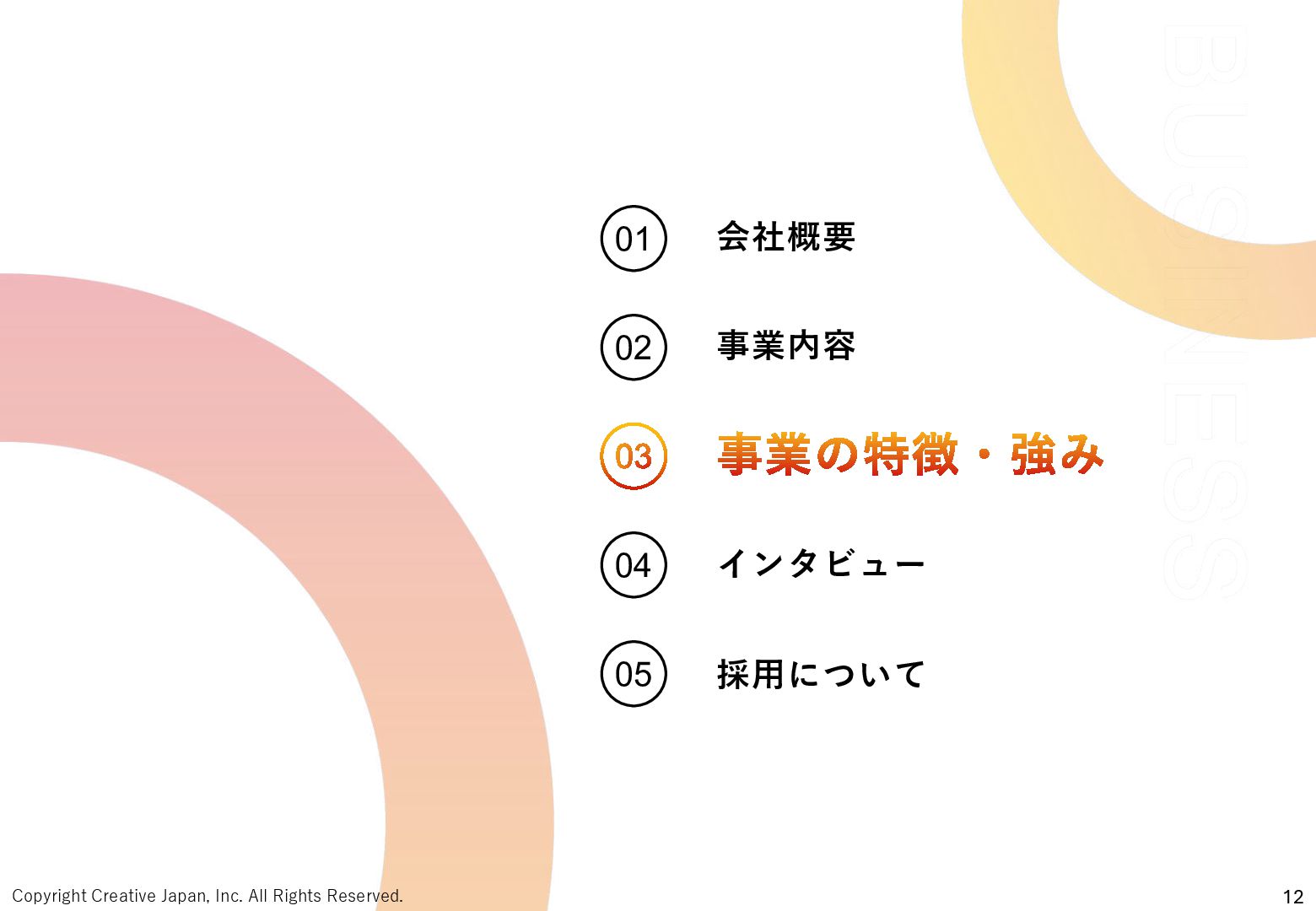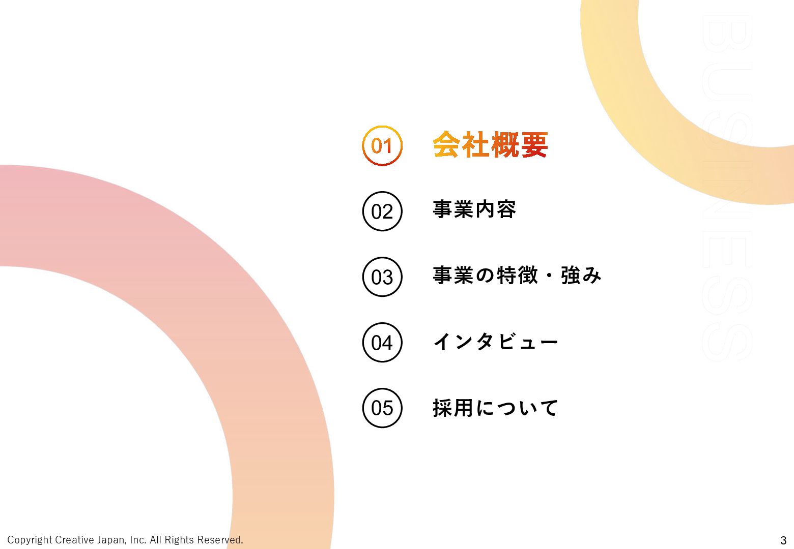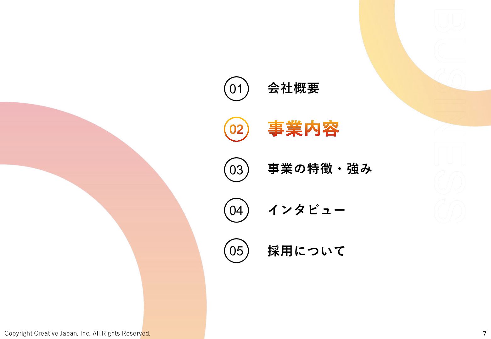 2. Copyright Creative Japan, Inc. All Rights Reserved. 02 事業内容 03