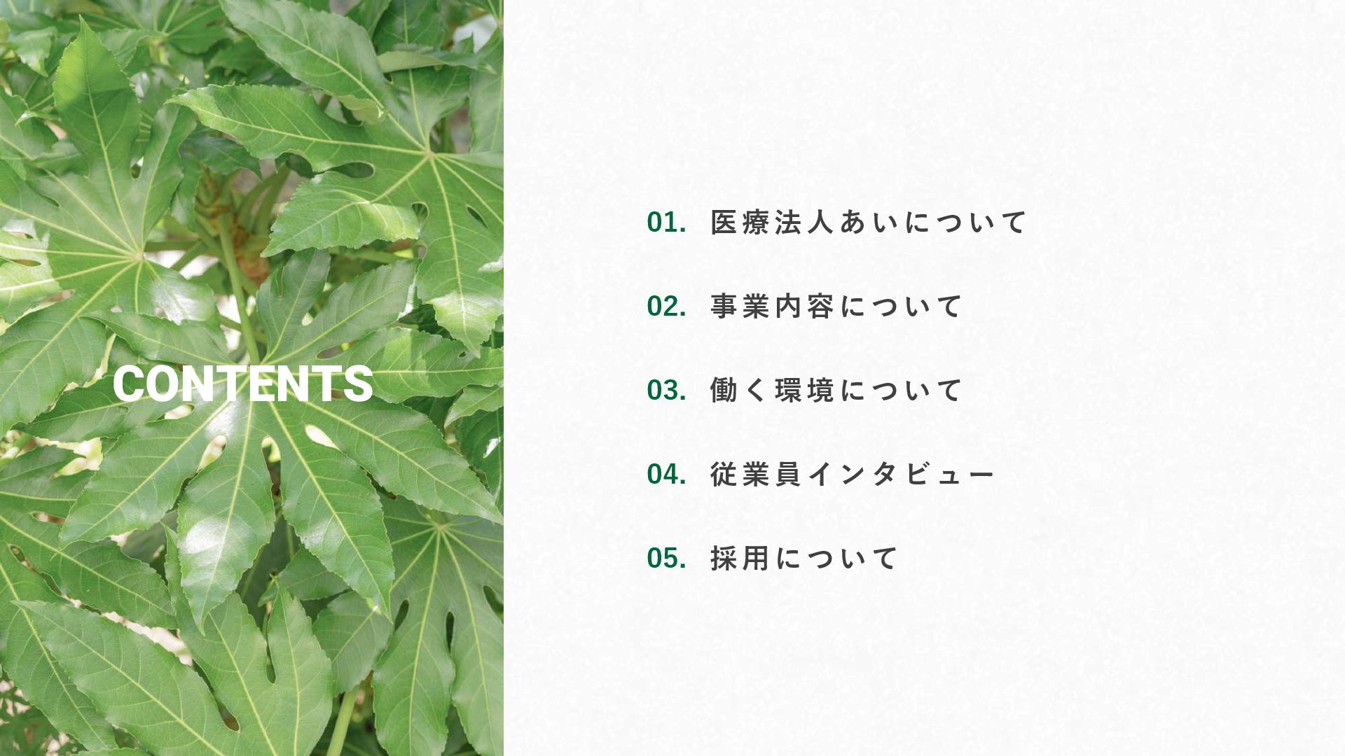 1. CONTENTS 01. 02. 03. 04. 05. 医 療法⼈あい につい て