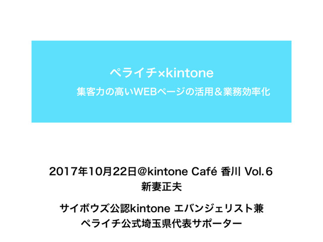 kintone Café 香川 Vol.6にてお話しさせていただきました、誰にでも簡単にWebページが作れるペライチとkintone連携についてのご紹介です。こちはら、当日スライドにデモのスクリーンショットを追加して再構成したものとなります。