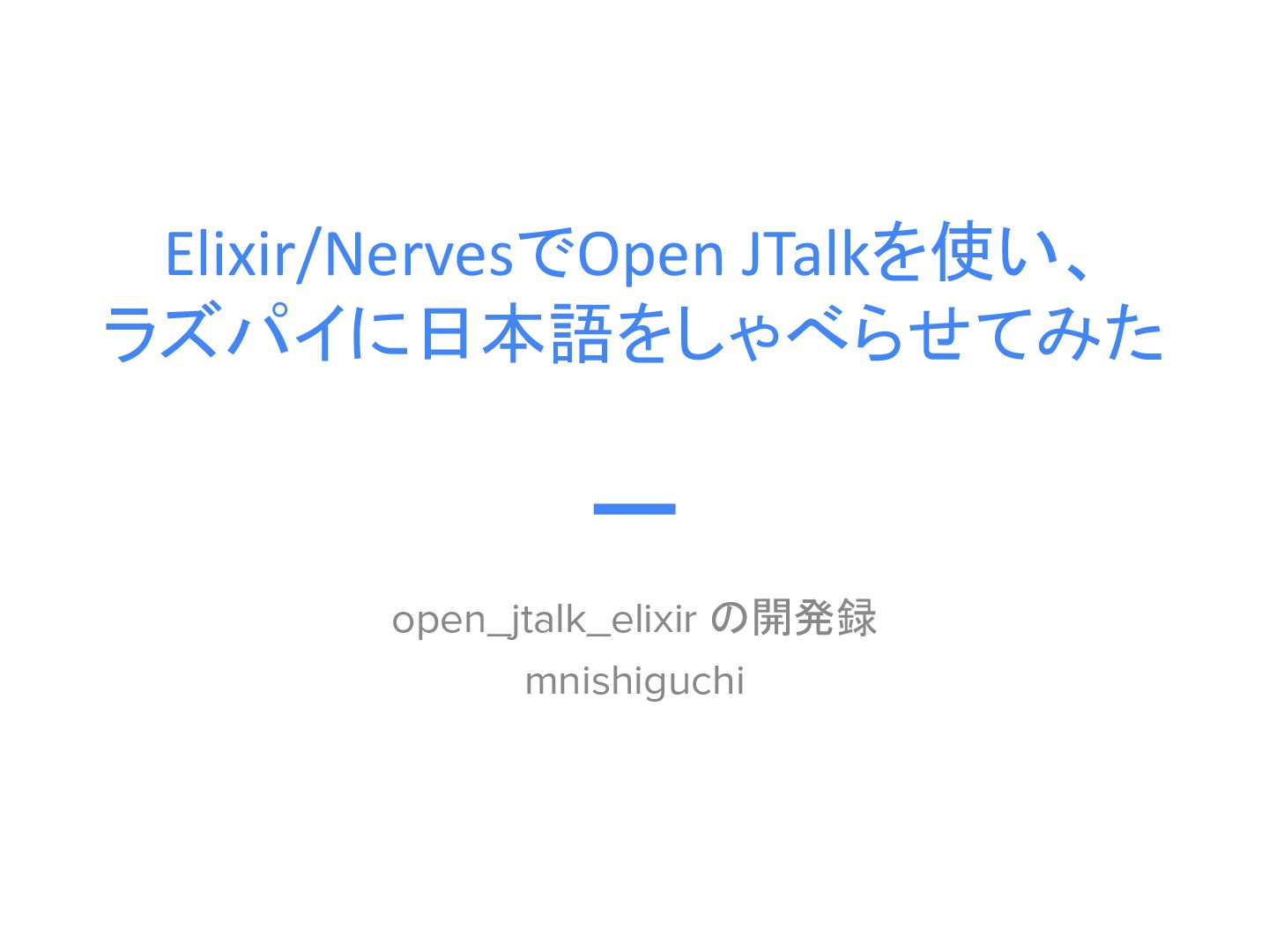 Elixir/NervesでOpen JTalkを使い、 ラズパイに日本語をしゃべらせてみた open_jtalk_elixir の開発録 mnishiguchi