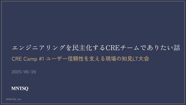 ©MNTSQ, Ltd. 2025/06/26 エンジニアリングを民主化するCREチームでありたい話 CRE Camp #1 ユーザー信頼性を支える現場の知見LT大会