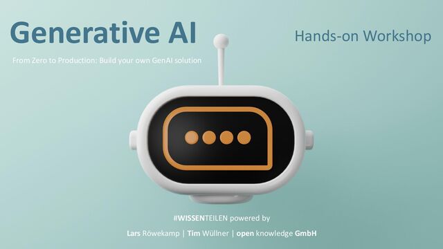 During this full day hands-on workshop, we will build a complex Generative AI application step by step. Starting with a minimalist RAG system, we will look at various challenges and discuss suitable solutions. In the end, we will have an architecture that can withstand the challenges of reality.