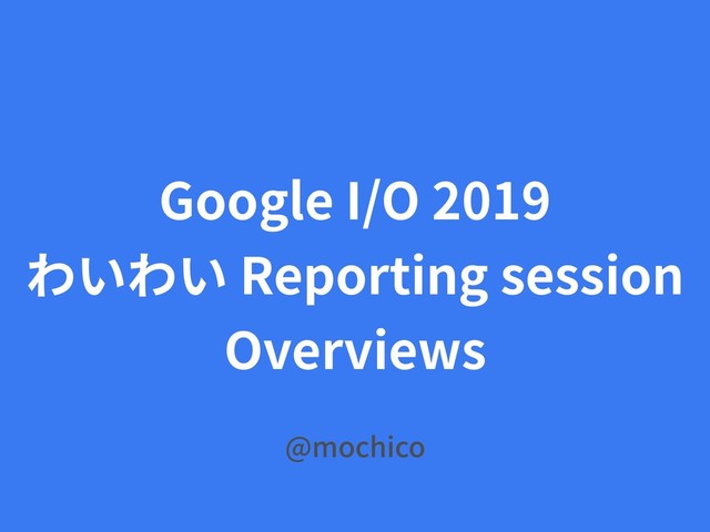 Google I/O 2019 わいわい Reporting session Overviews @mochico