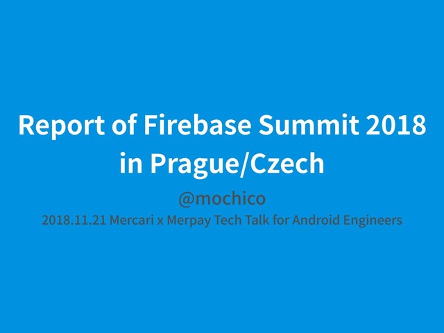Mercari x Merpay Tech Talk for Android Engineers - connpass : https://mercari.connpass.com/event/107293/ Firebase Summit 2018 in Prague / Czech Report and introduce MLKit