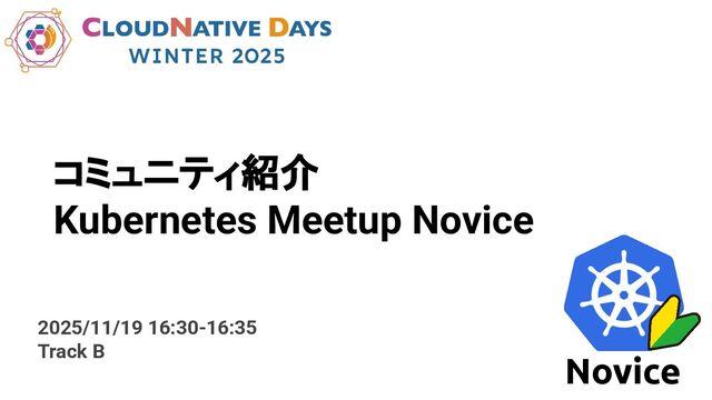 2025/11/19 CloudNative Days Winter 2025 16:30-16:35 Track D コミュニティ紹介: Kubernetes Meetup Novice