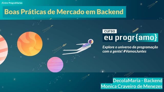 Back-end • Bacharel em Sistemas de Informação e Matemática • Ex-aluna do [des]programe, {reprograma} e DigitalHouse> • Professora de Programação • Palestrante, Apresentadora/Mestre de Cerimônias e Participante de Diversos Eventos na área de Tecnologia • Coordenadora e Voluntária em Diversas Comunidades de TI • Embaixadora da Programaria • Host do Canal do da NodeBR do YouTube • Criadora de Conteúdo para as Redes Sociais @MOCRAVEIRODEV