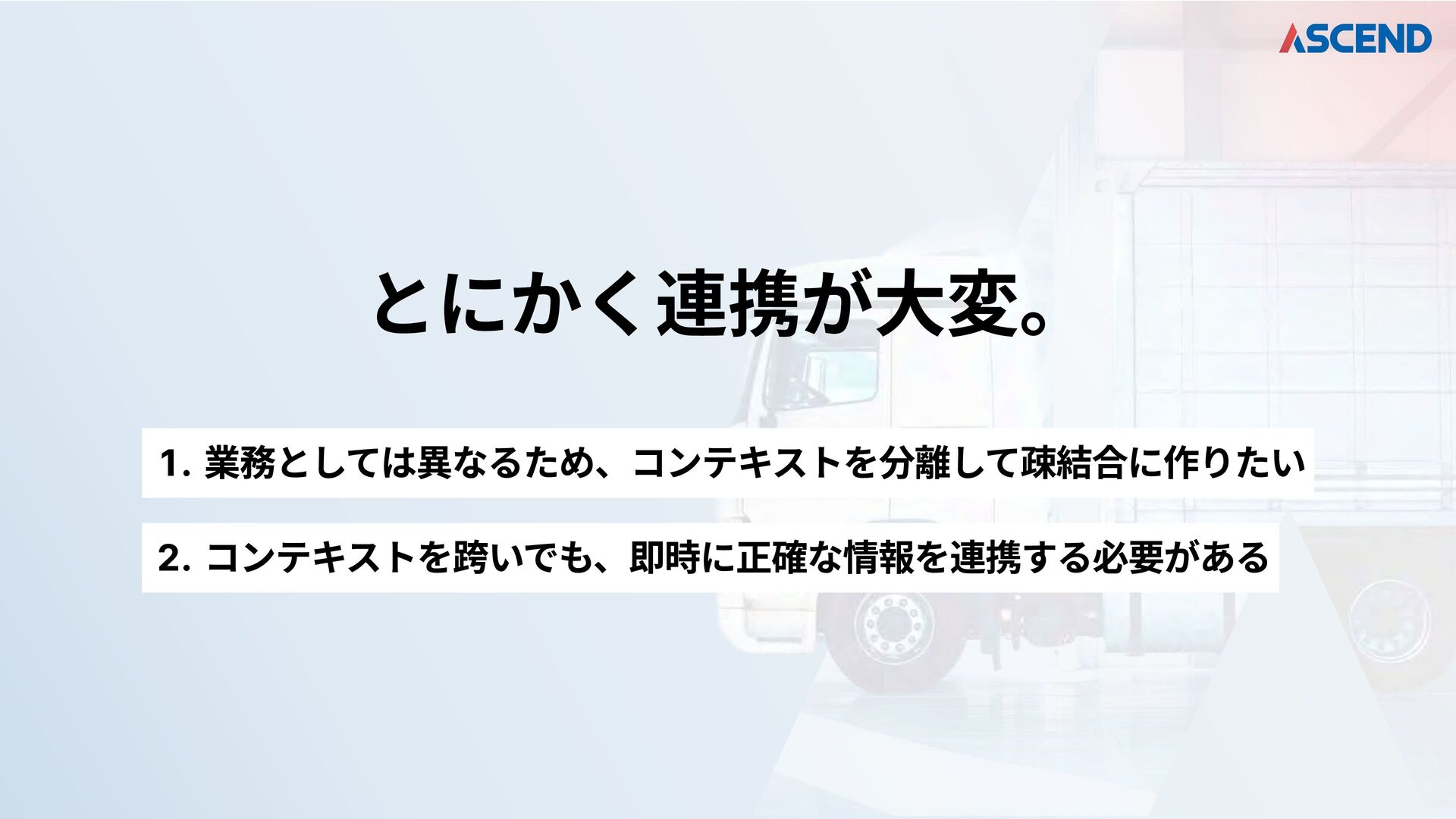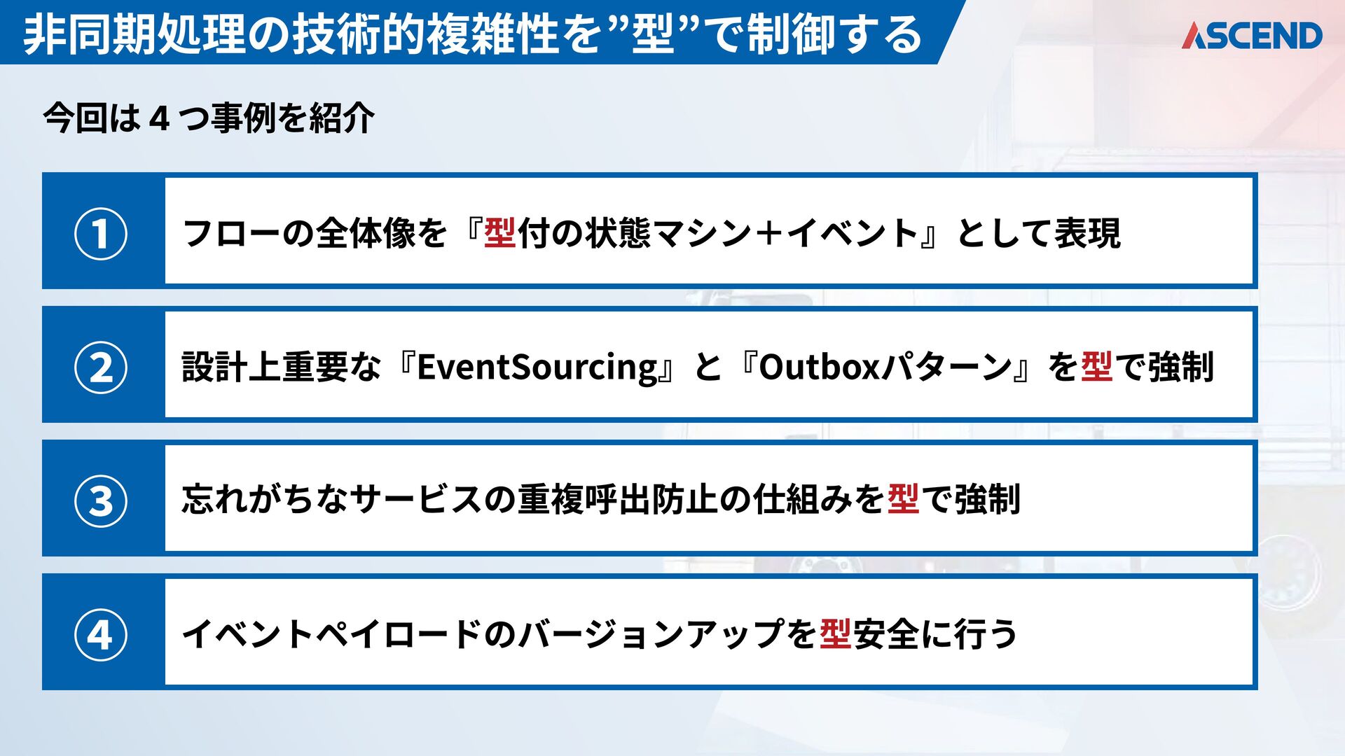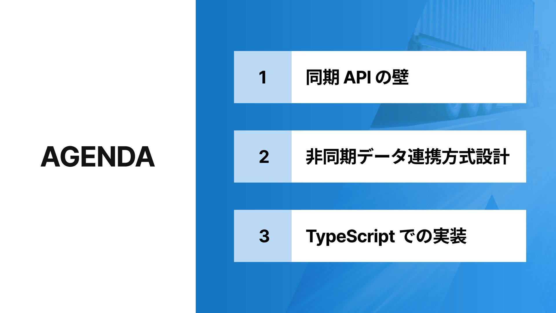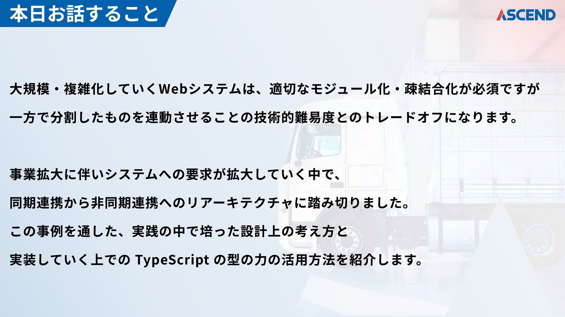 複数のドメインコンテキストで構成されるWebシステムは、コンテキストを跨ぐ更新を行う同期APIがパフォーマンスの悪化や障害の連鎖を招き、ユーザー体験を損ねがちです。本セッションでは、非同期で実行されるコンテキスト間データ連携を設計する知識を体系的にまとめつつ、特にTypeScriptの"型=契約"を核にしたイベント駆動+Sagaパターンを採用した場合の実戦知を共有します。