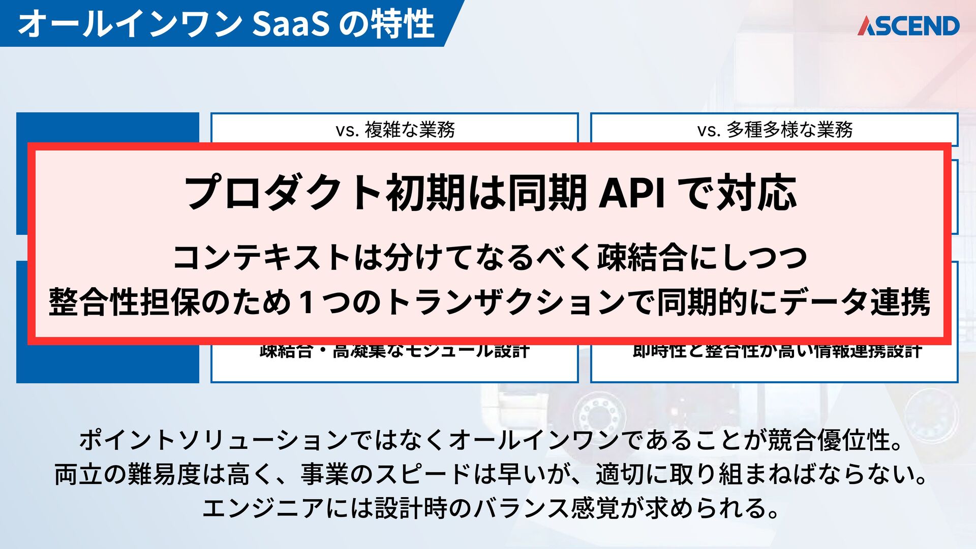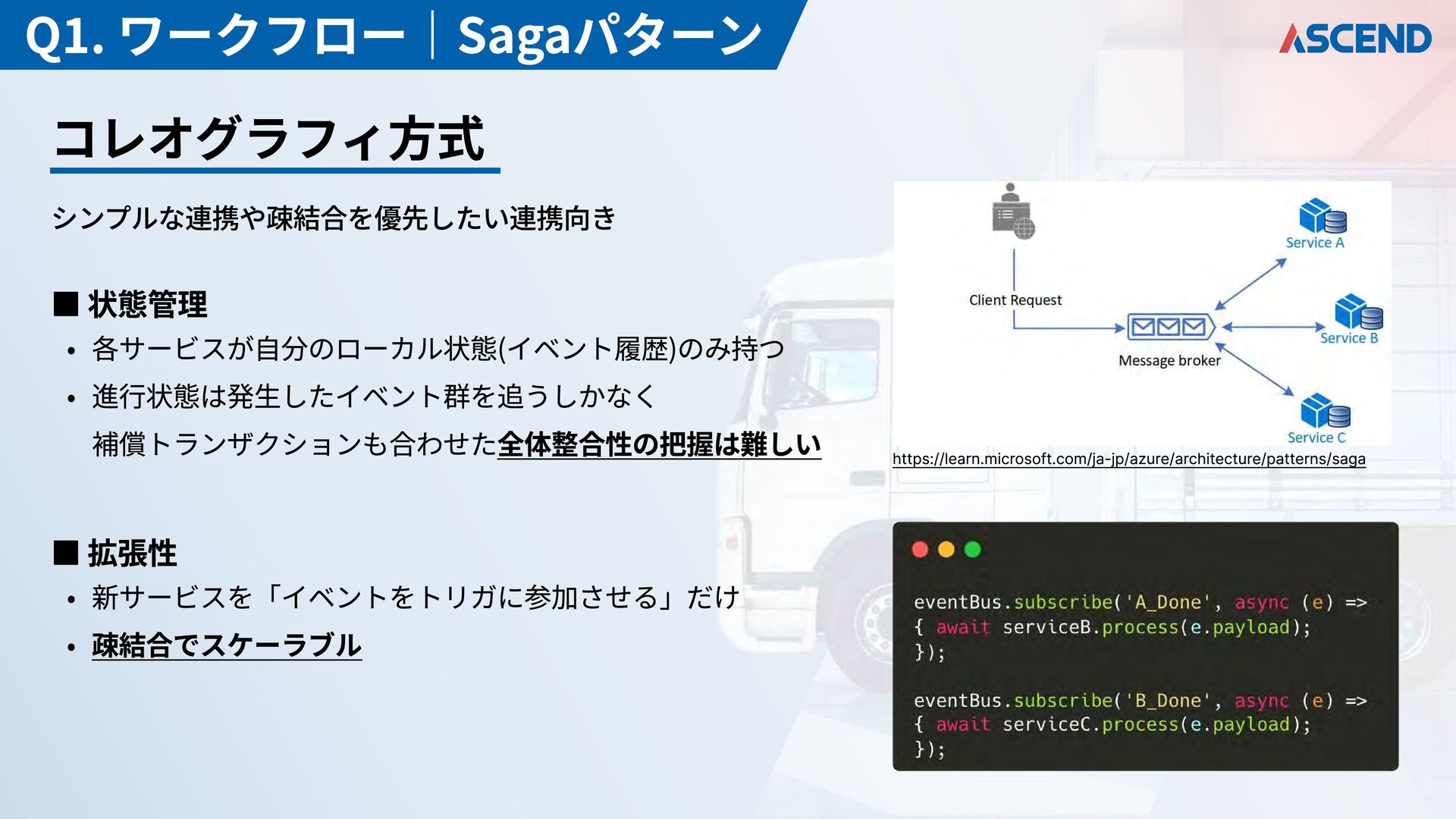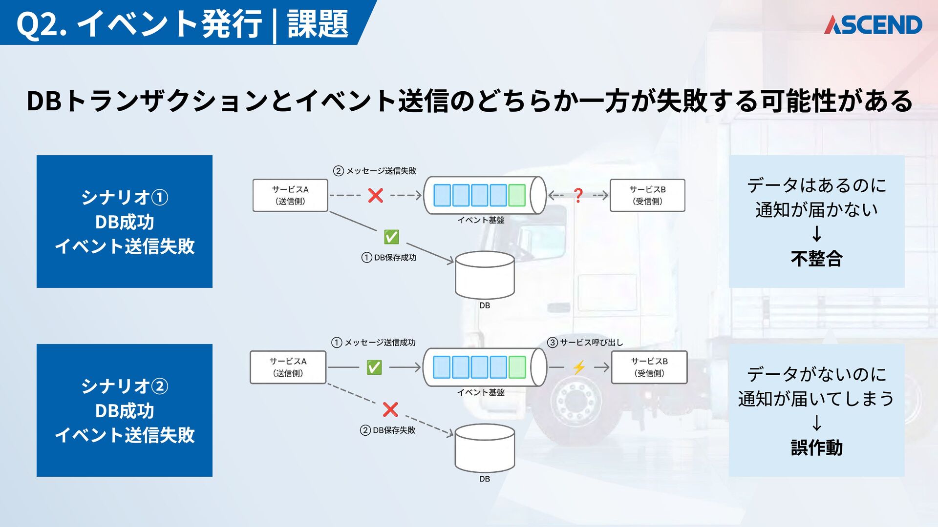 複数のドメインコンテキストで構成されるWebシステムは、コンテキストを跨ぐ更新を行う同期APIがパフォーマンスの悪化や障害の連鎖を招き、ユーザー体験を損ねがちです。本セッションでは、非同期で実行されるコンテキスト間データ連携を設計する知識を体系的にまとめつつ、特にTypeScriptの"型=契約"を核にしたイベント駆動+Sagaパターンを採用した場合の実戦知を共有します。