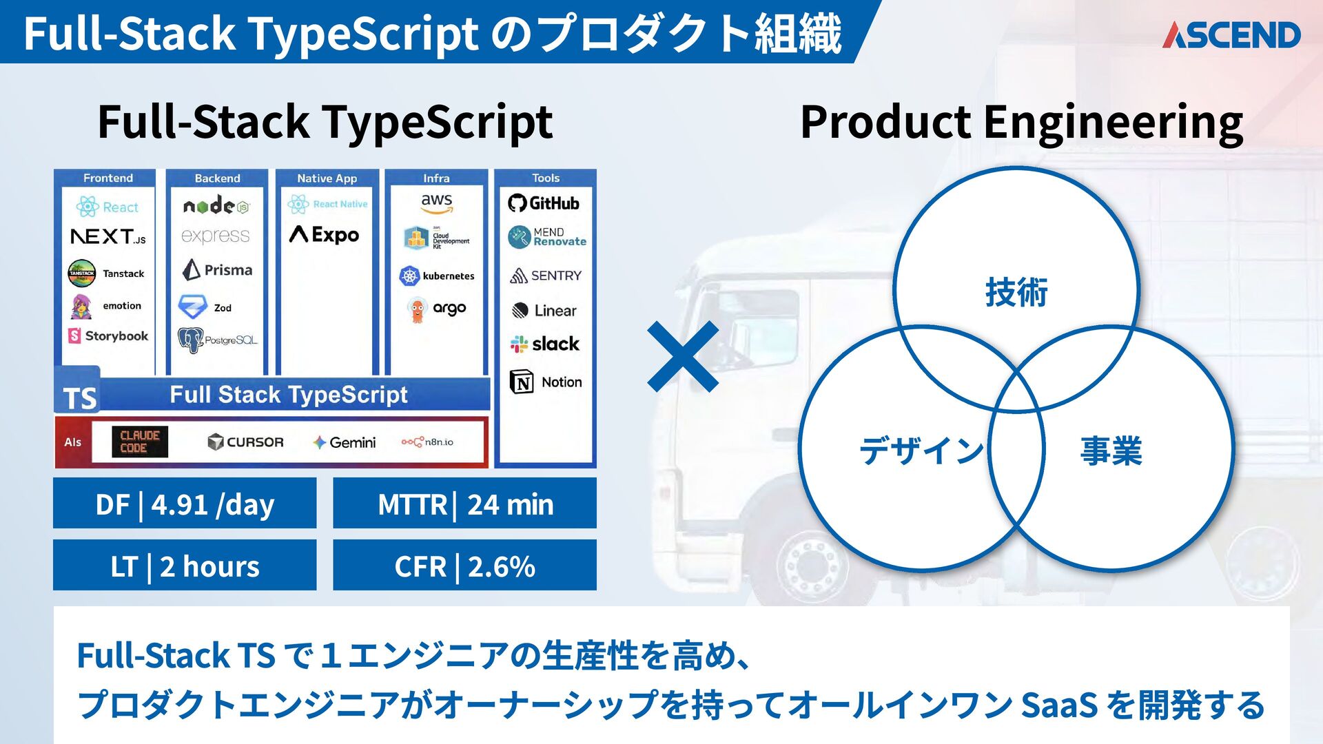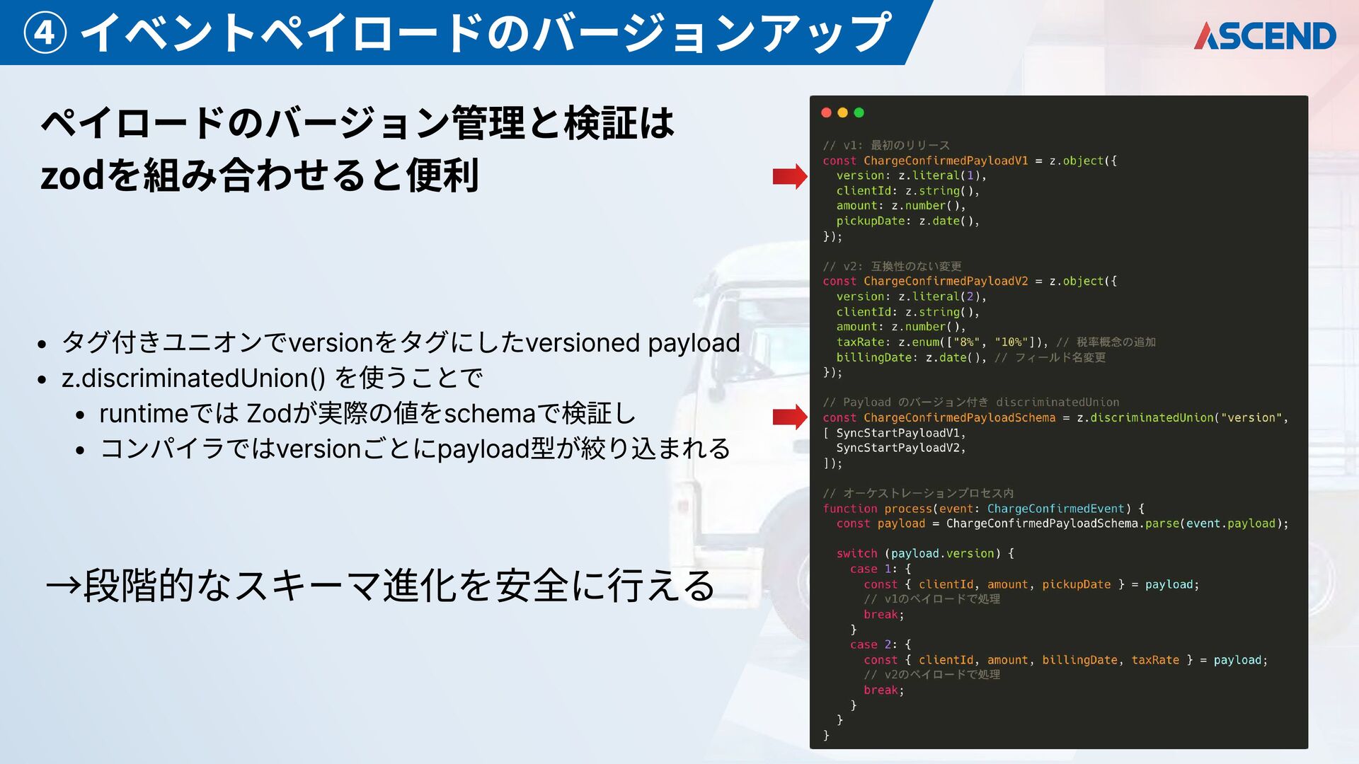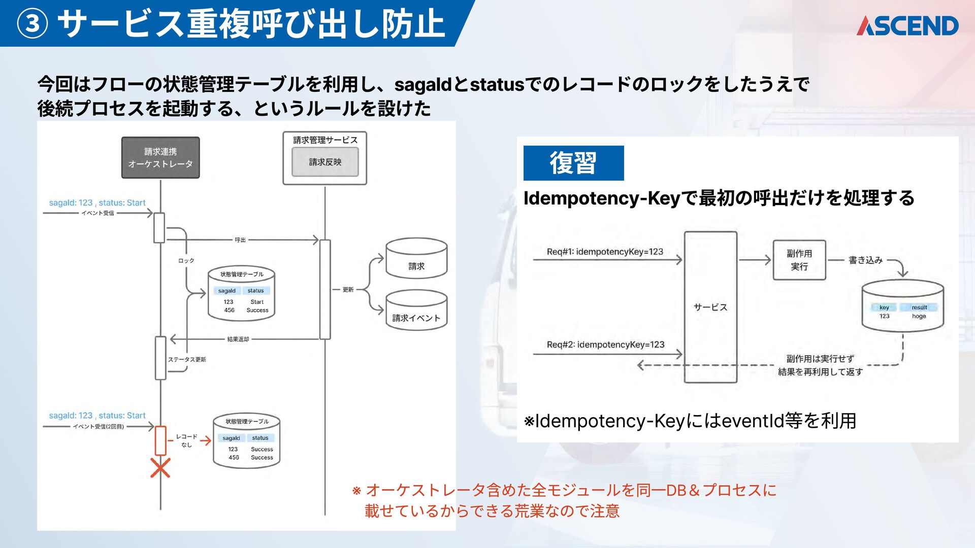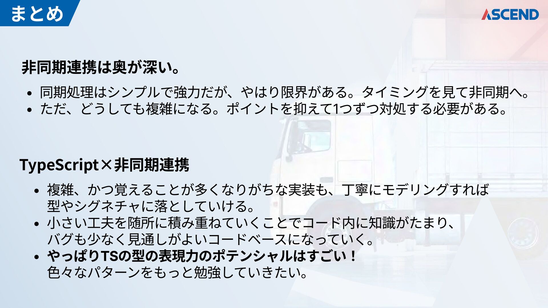 複数のドメインコンテキストで構成されるWebシステムは、コンテキストを跨ぐ更新を行う同期APIがパフォーマンスの悪化や障害の連鎖を招き、ユーザー体験を損ねがちです。本セッションでは、非同期で実行されるコンテキスト間データ連携を設計する知識を体系的にまとめつつ、特にTypeScriptの"型=契約"を核にしたイベント駆動+Sagaパターンを採用した場合の実戦知を共有します。