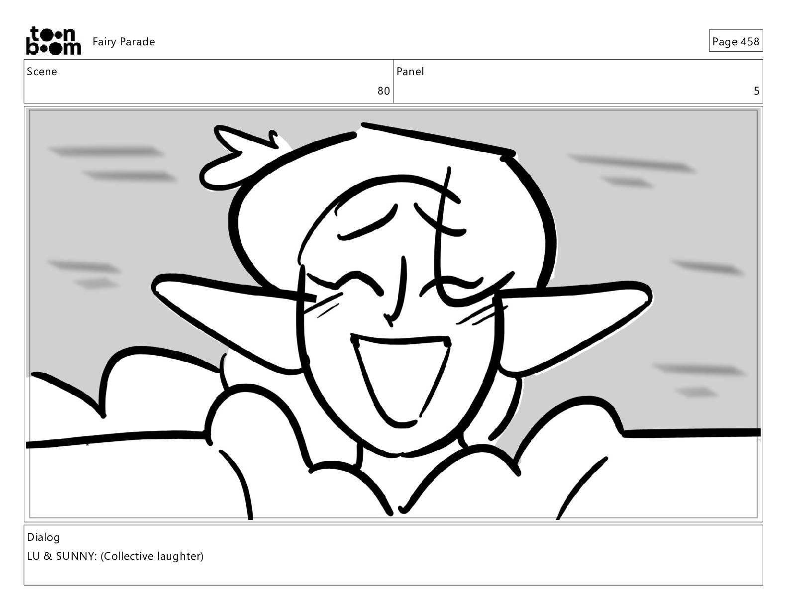 Scene 80 Panel 7 Dialog LU & SUNNY: (Collective laughter)