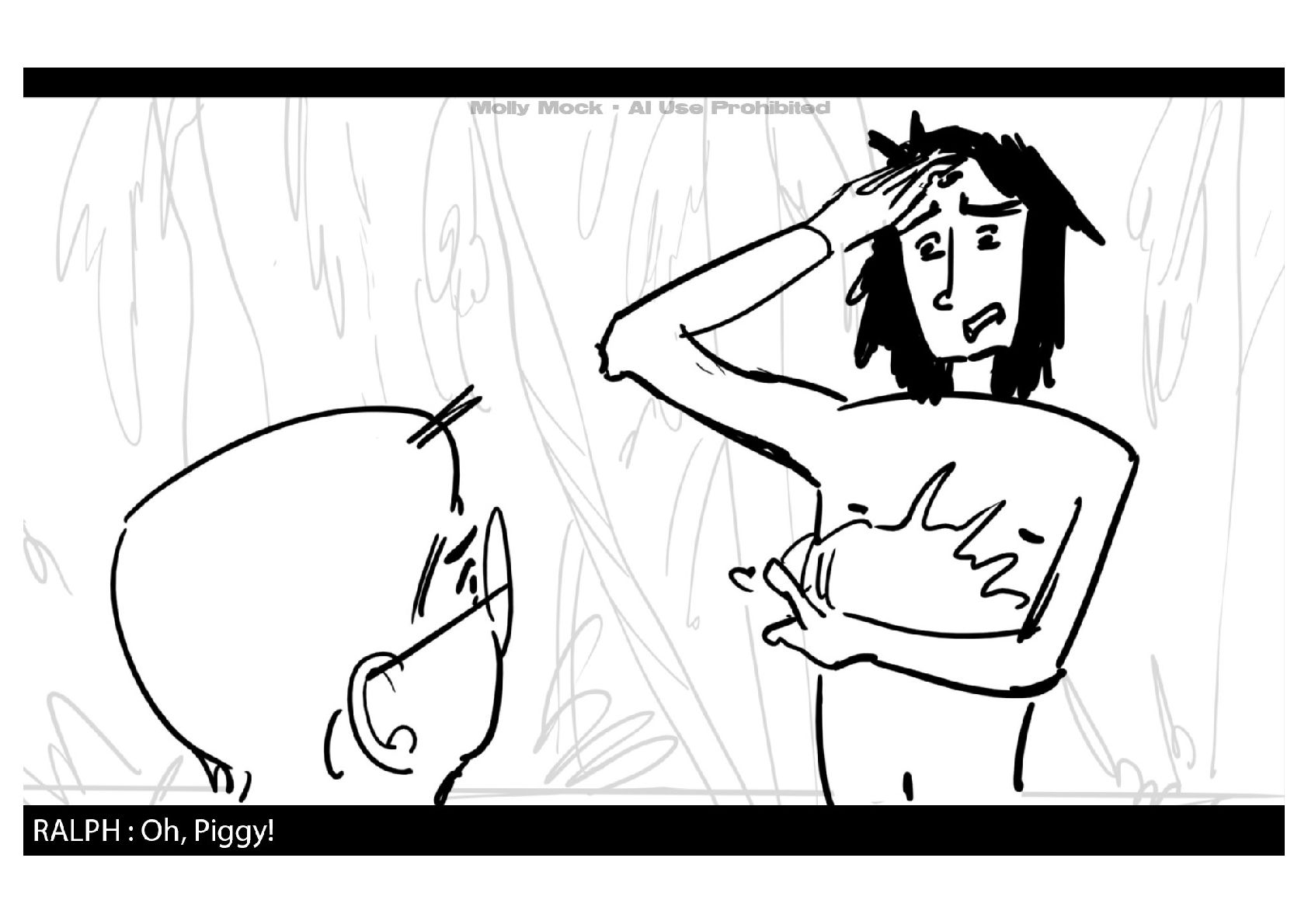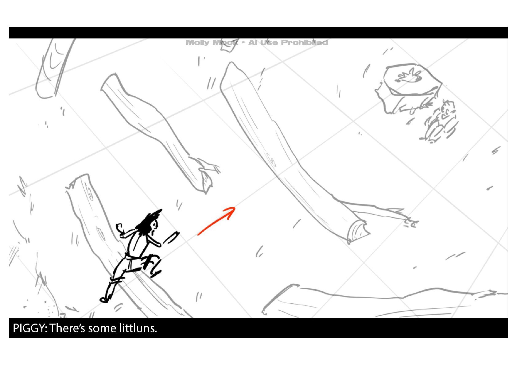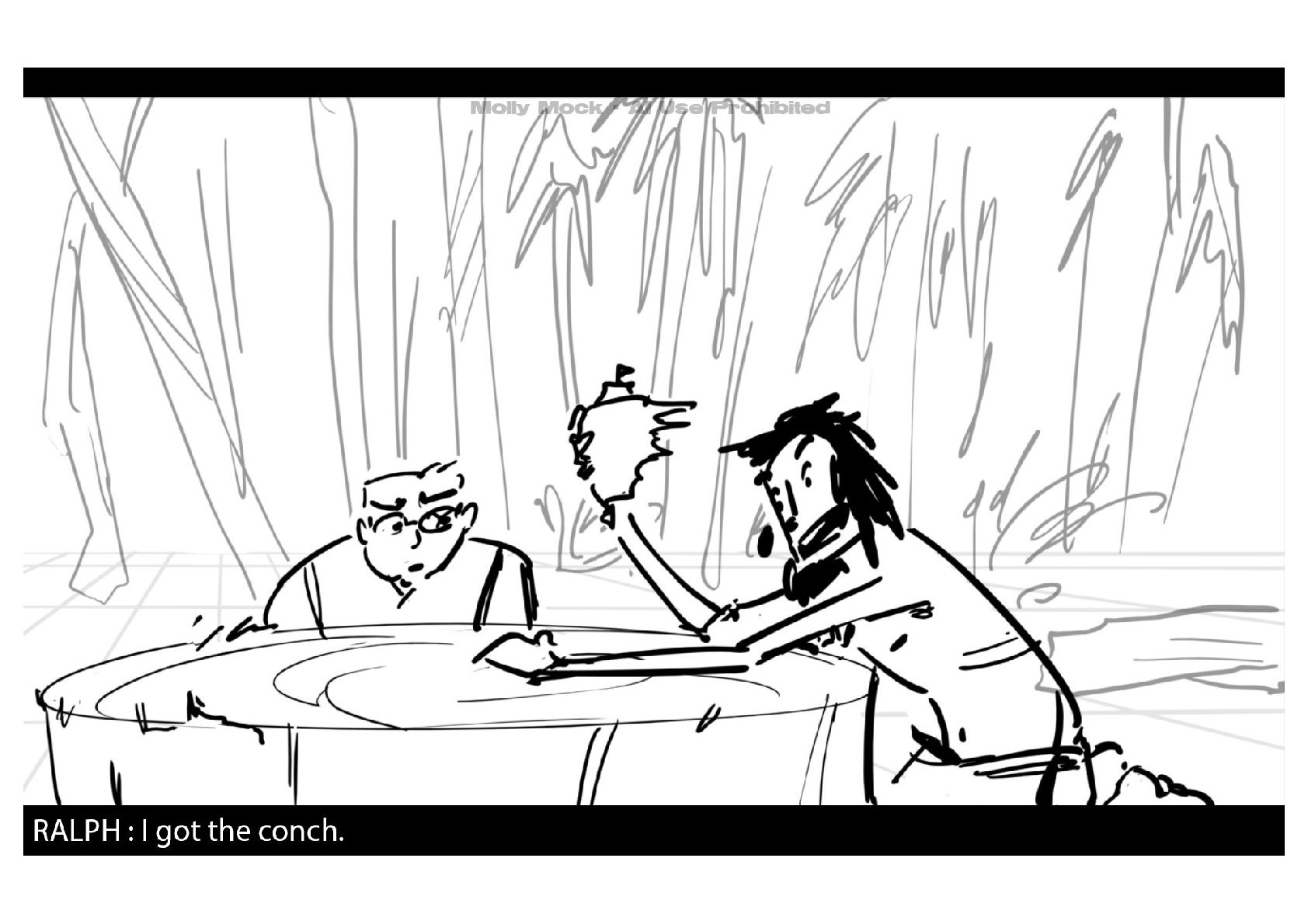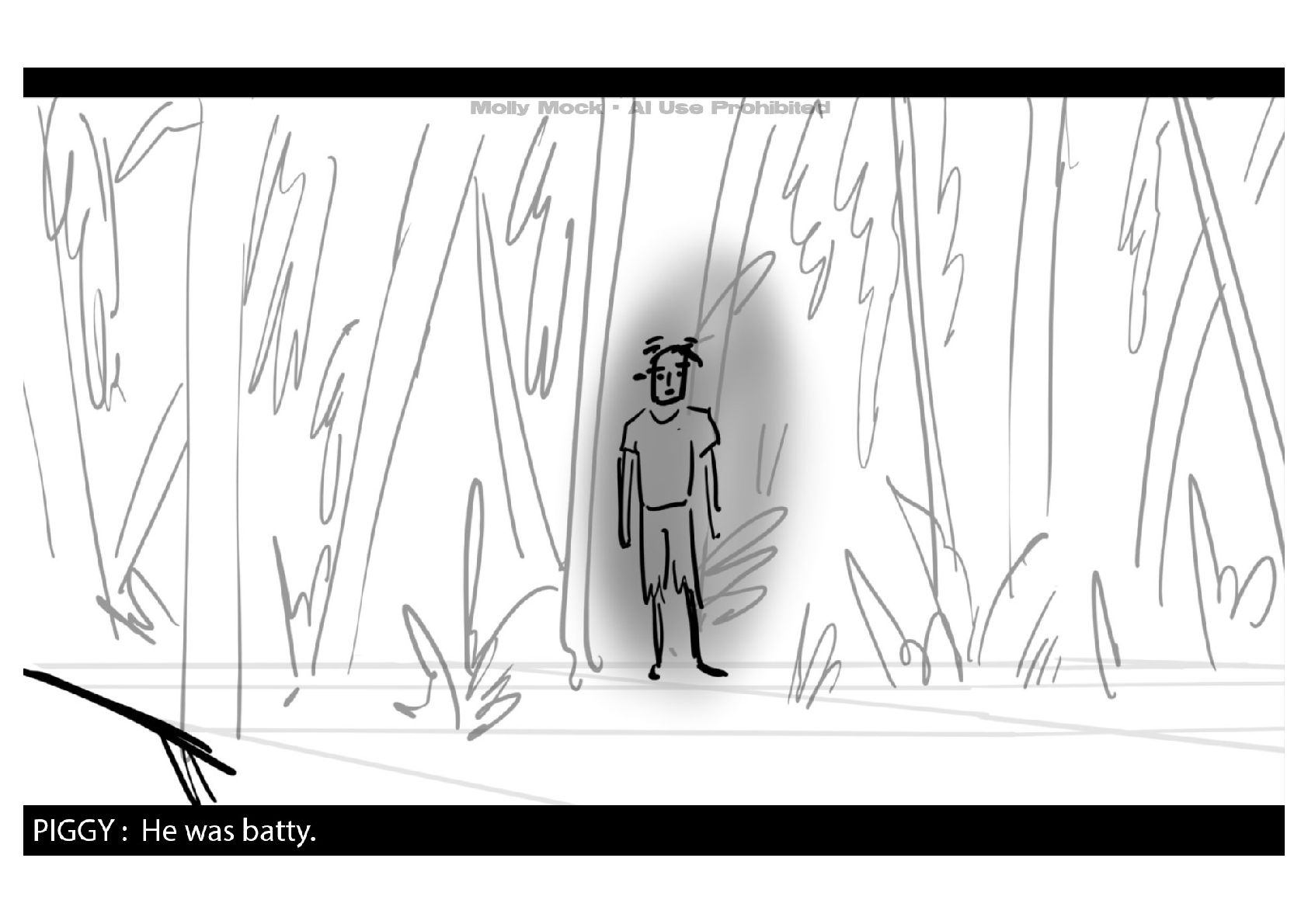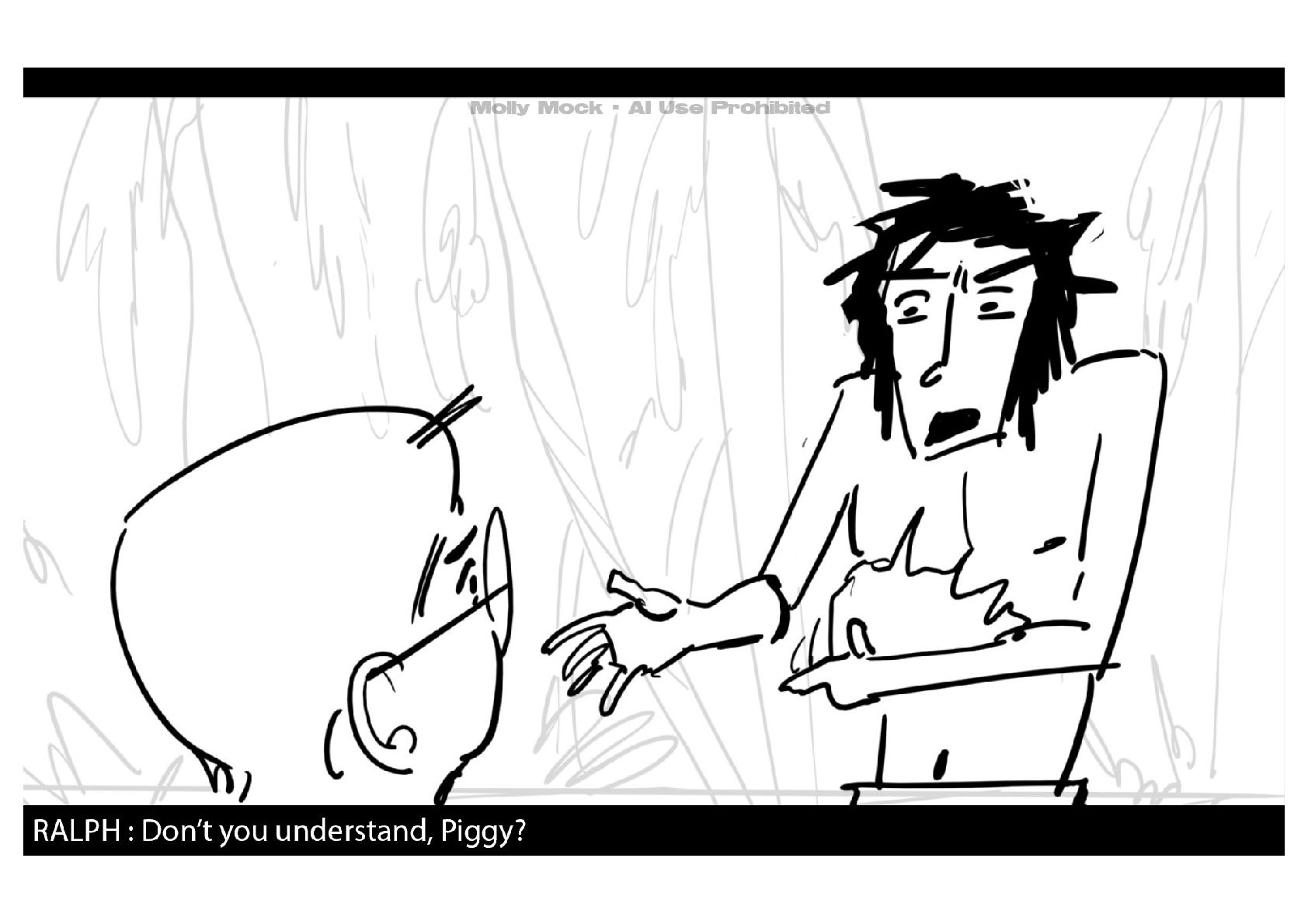 A storyboard adaptation of the first five pages of Chapter 10 in Lord of the Flies by William Golding.