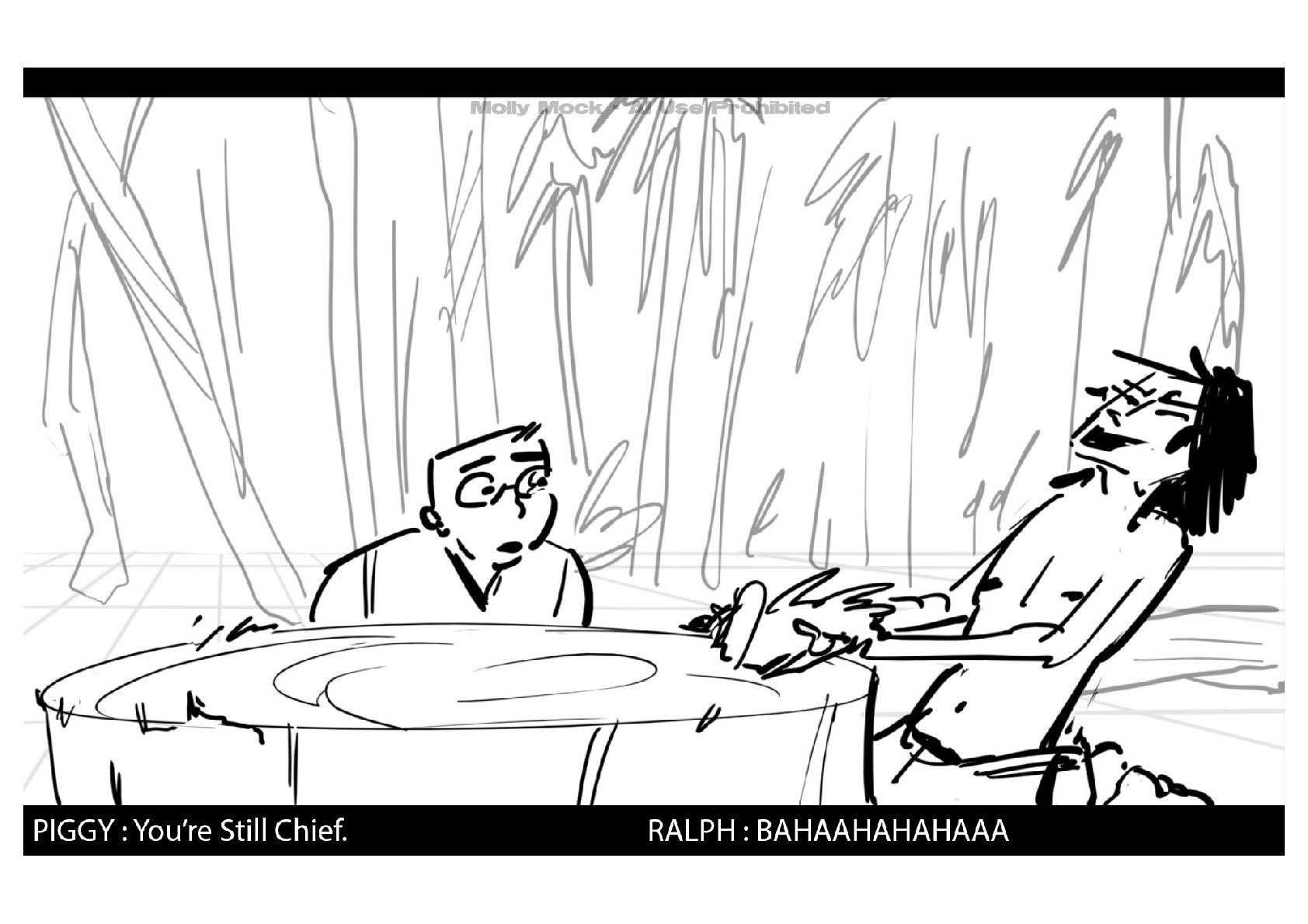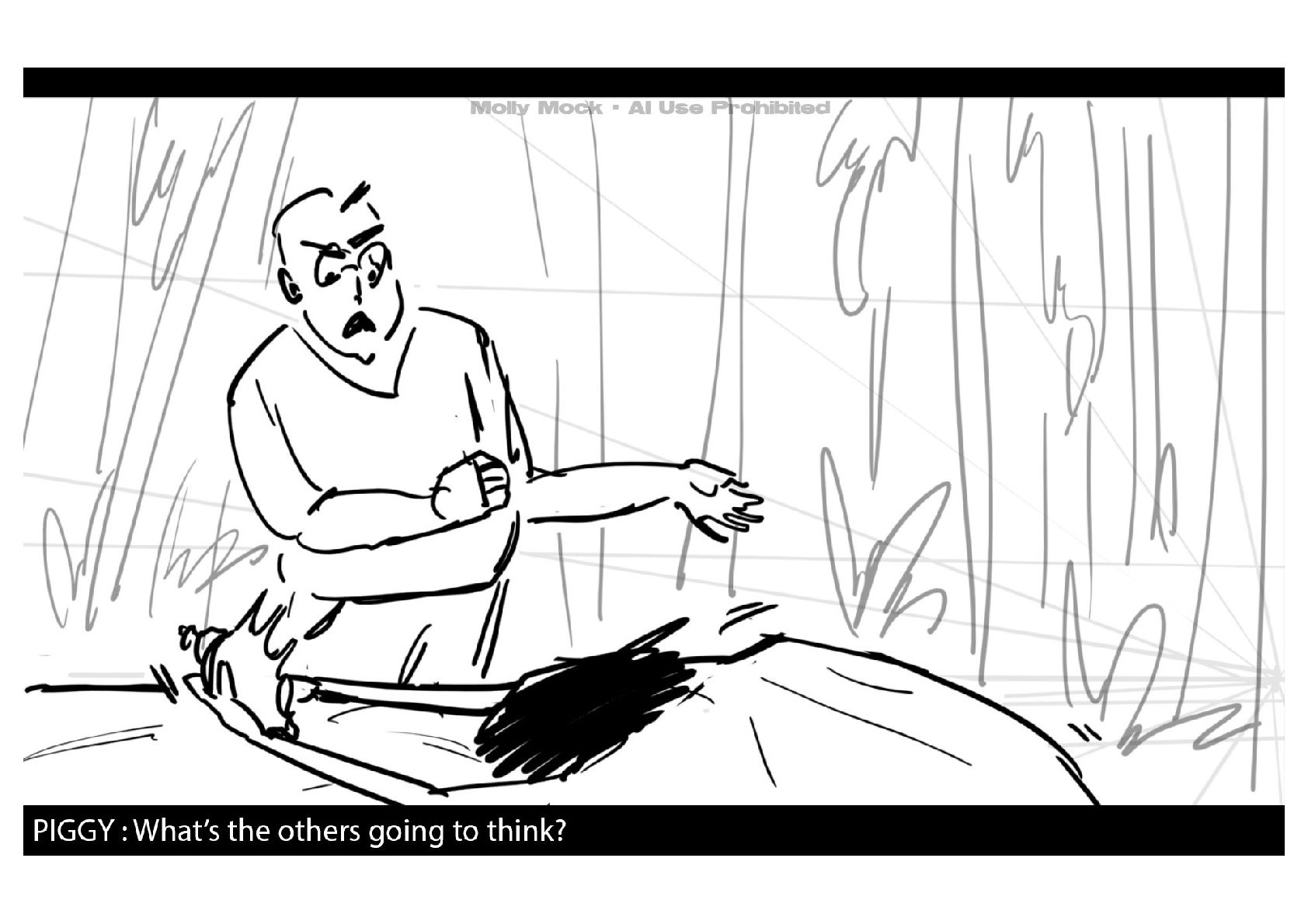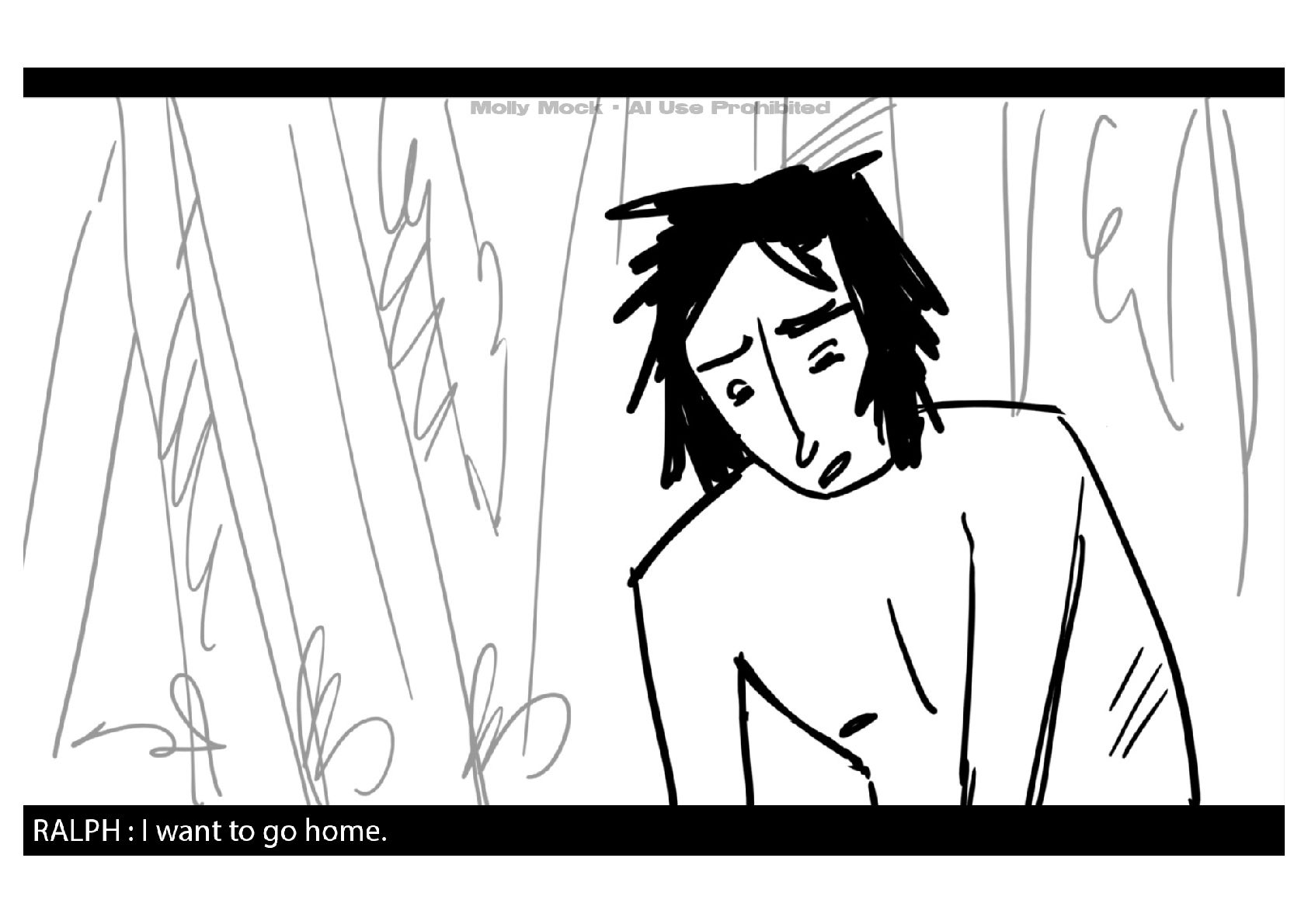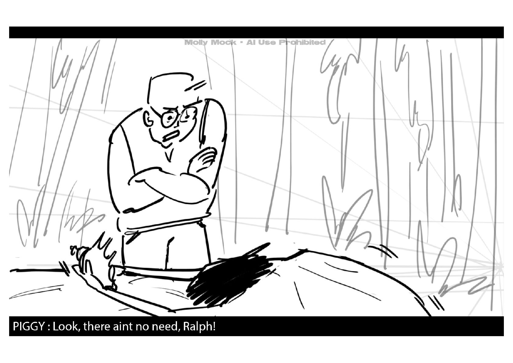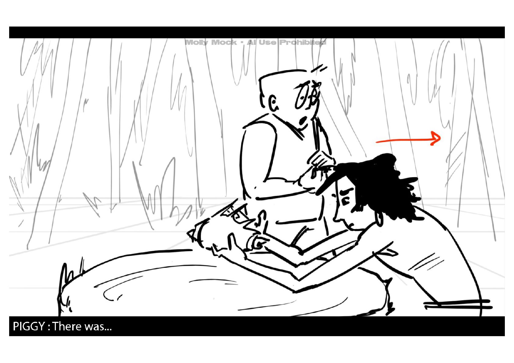 A storyboard adaptation of the first five pages of Chapter 10 in Lord of the Flies by William Golding.