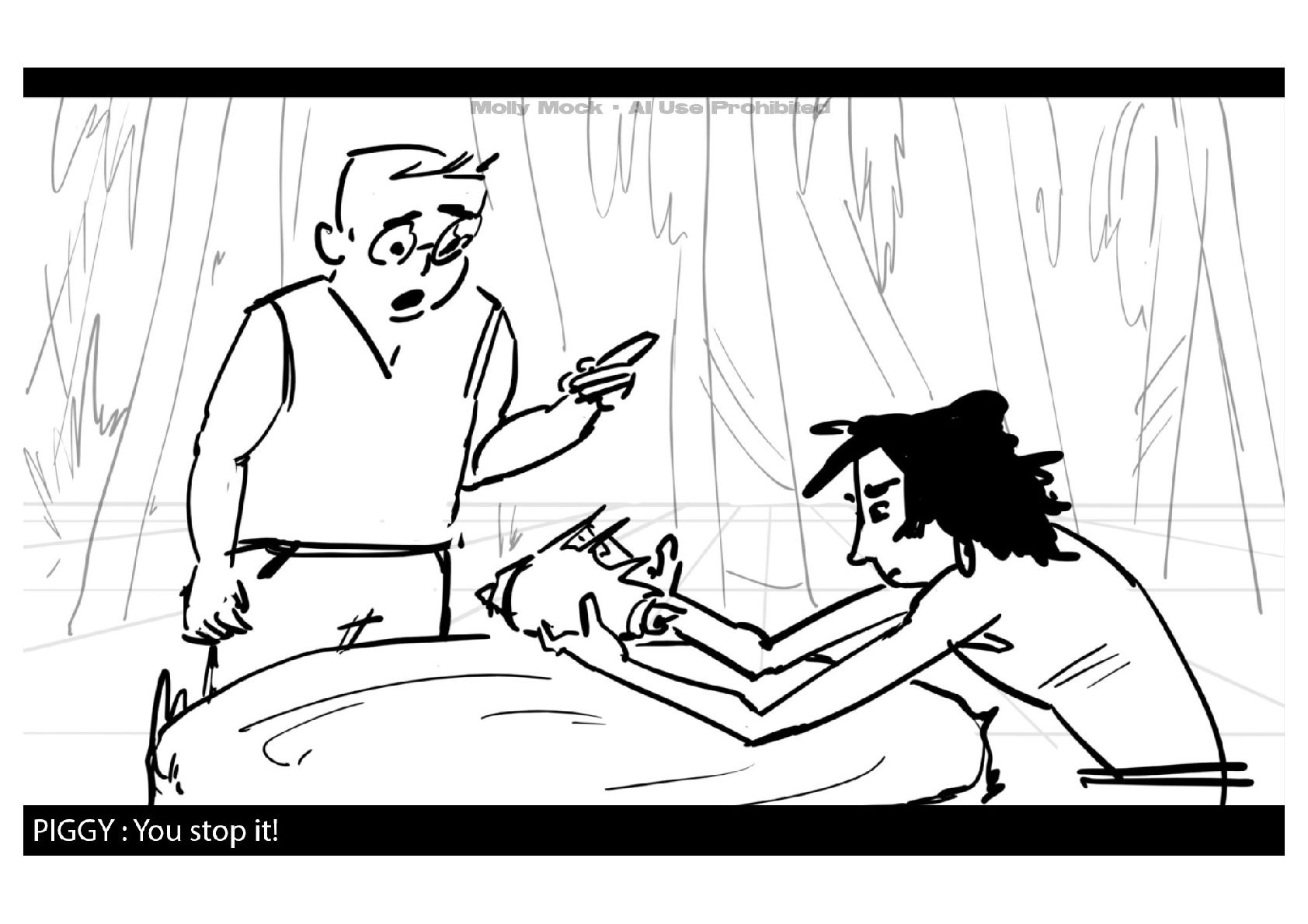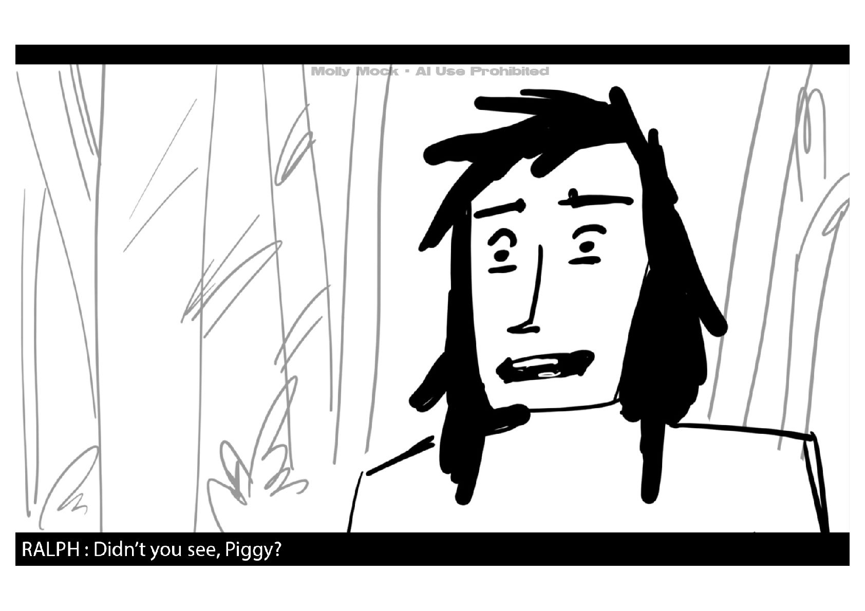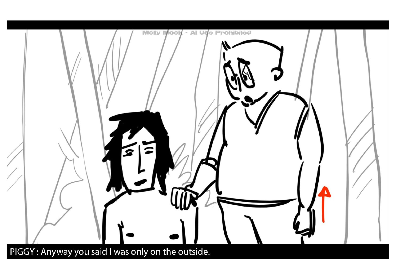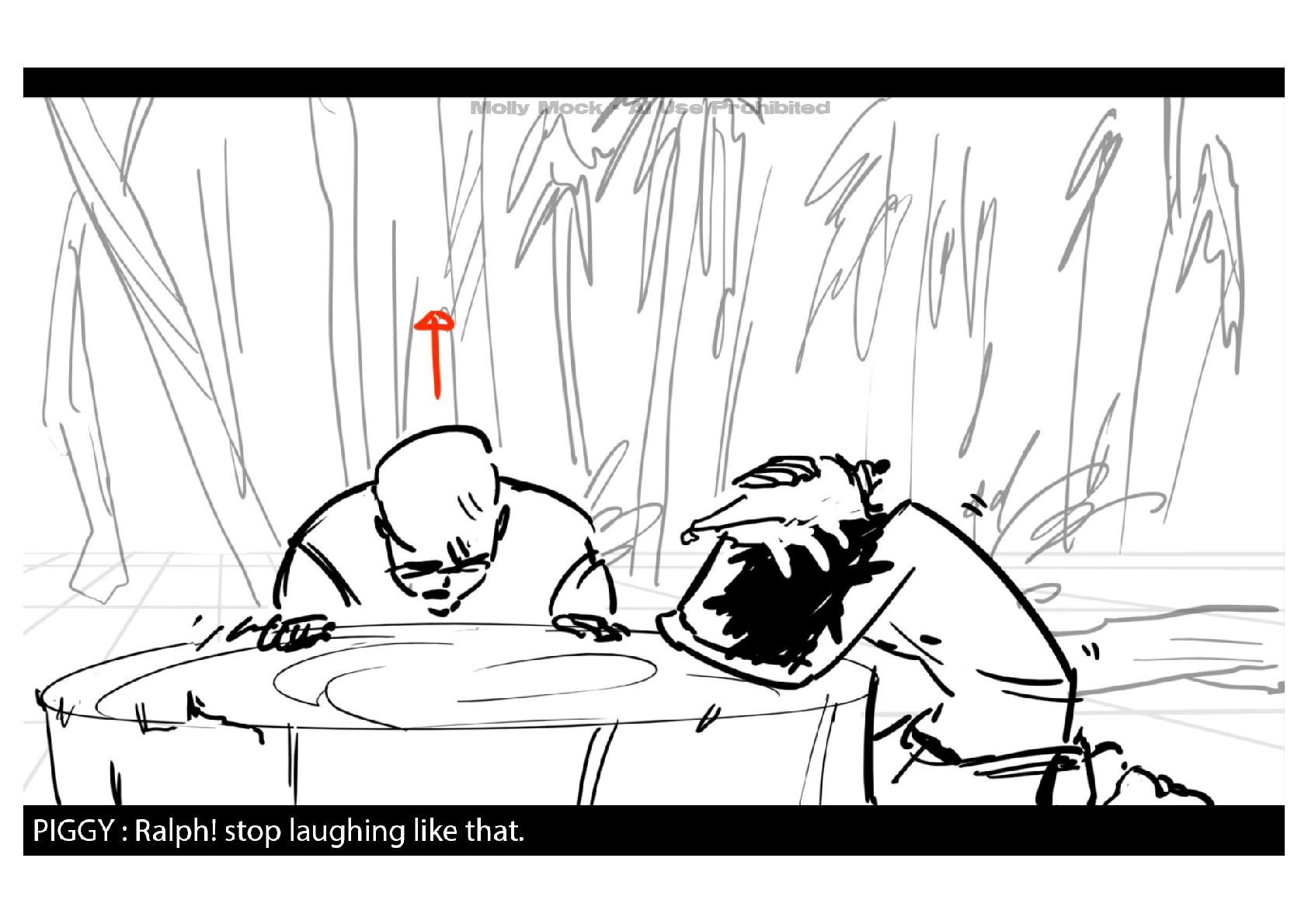 A storyboard adaptation of the first five pages of Chapter 10 in Lord of the Flies by William Golding.