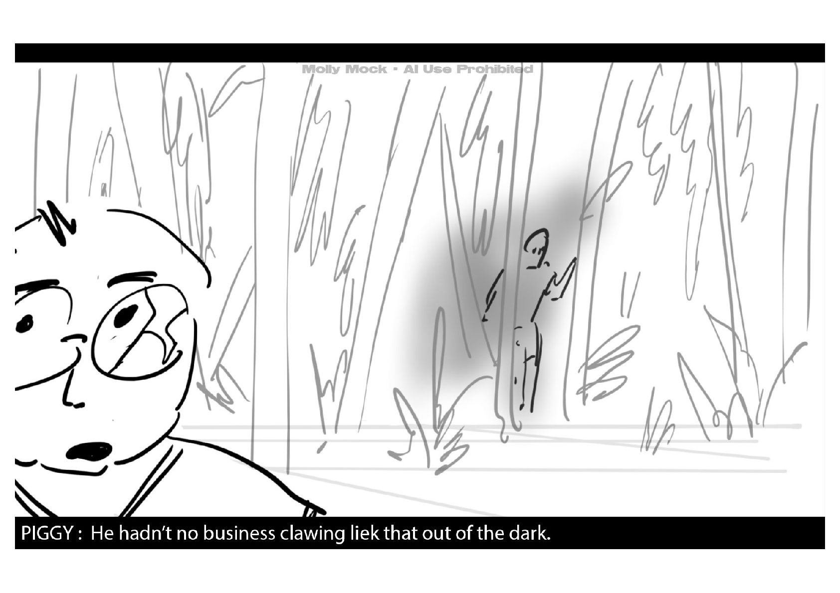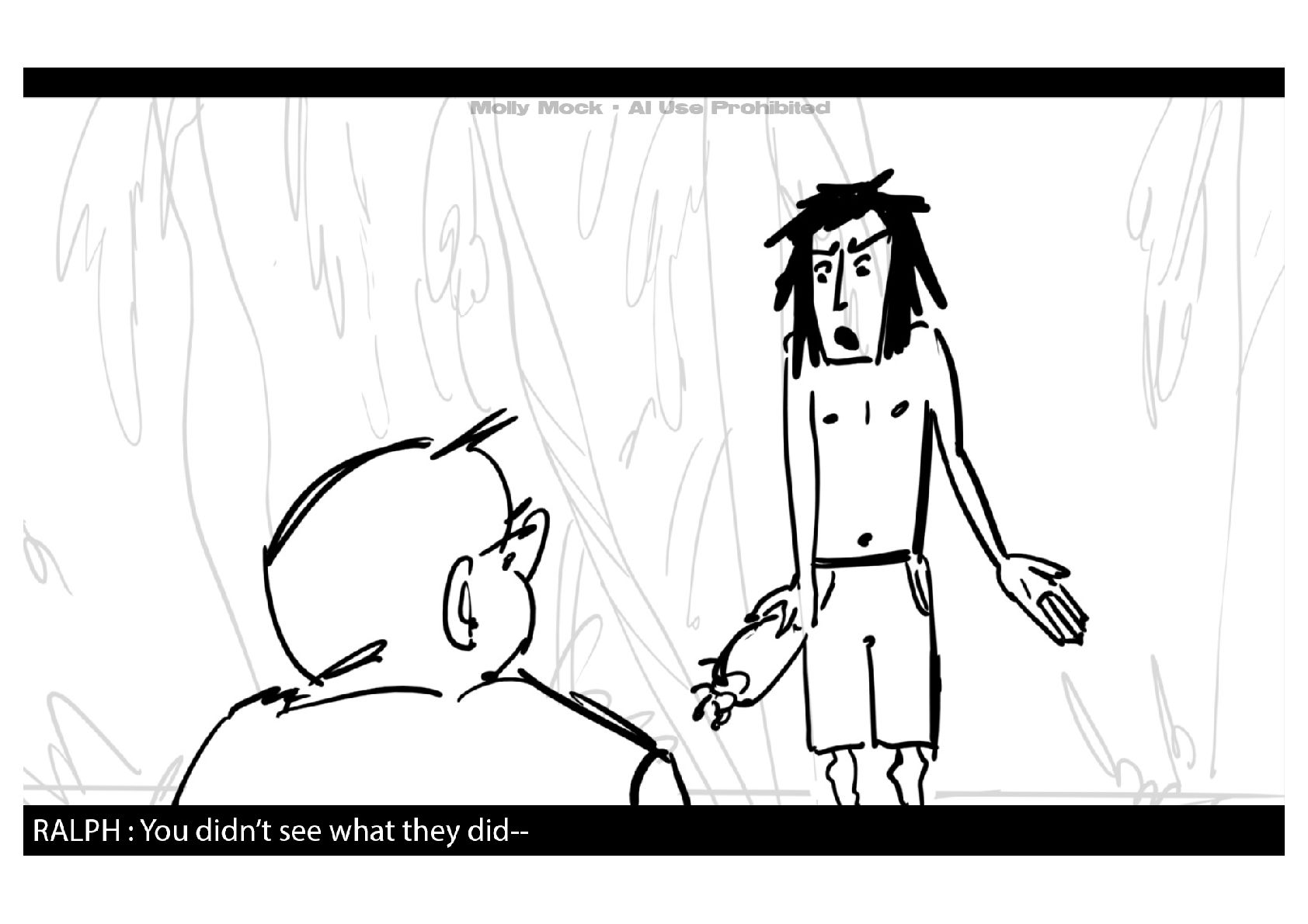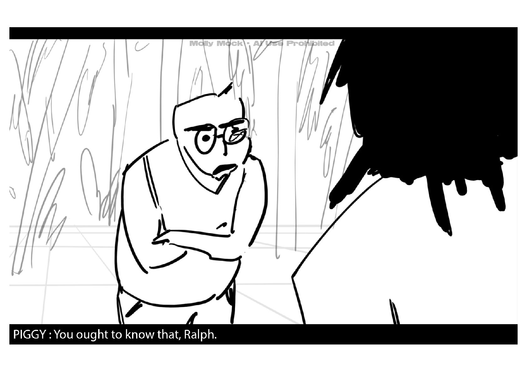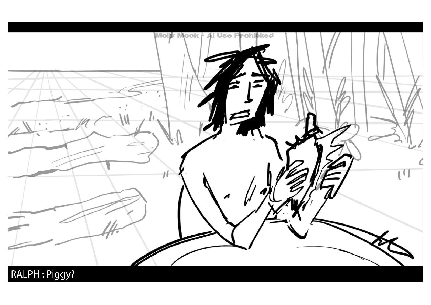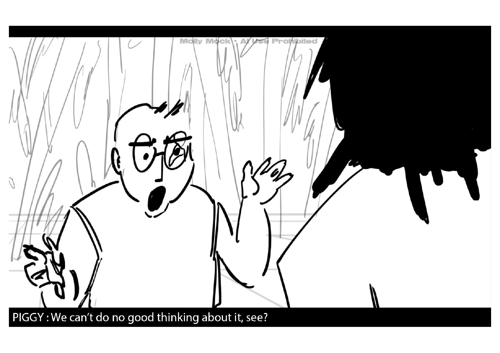 A storyboard adaptation of the first five pages of Chapter 10 in Lord of the Flies by William Golding.