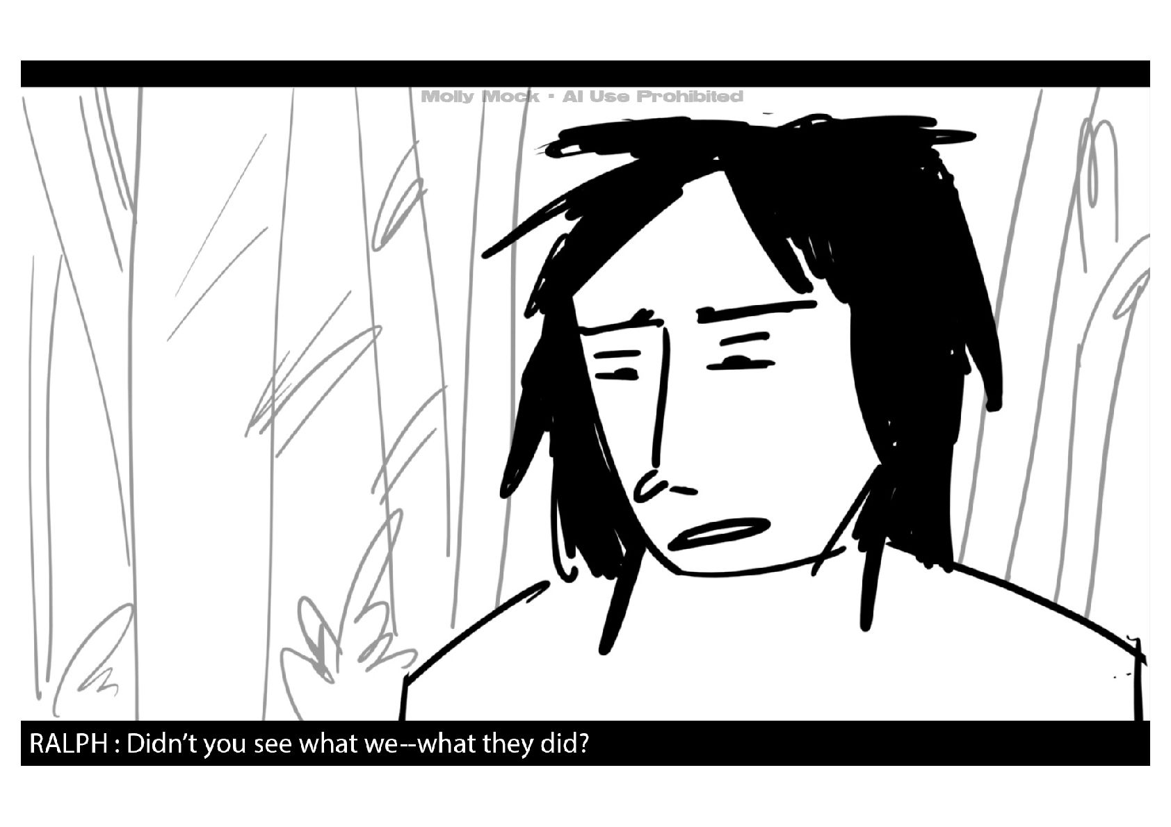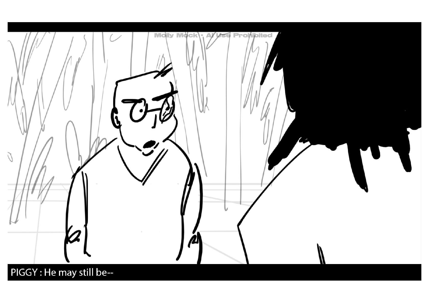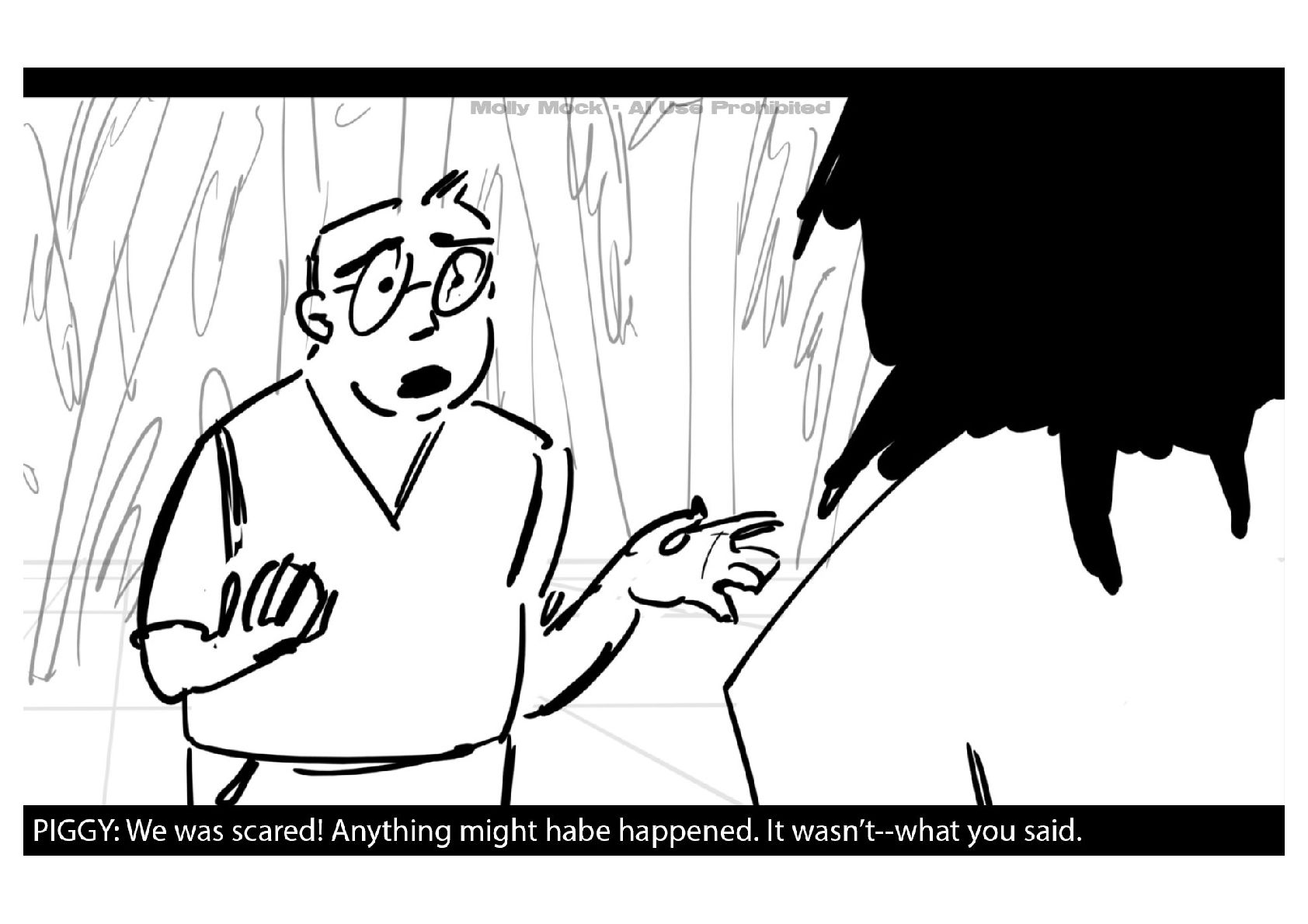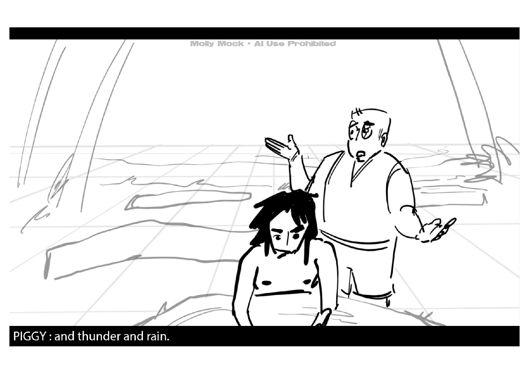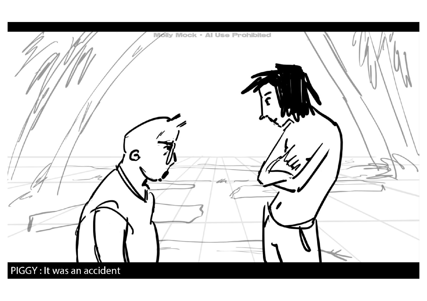A storyboard adaptation of the first five pages of Chapter 10 in Lord of the Flies by William Golding.