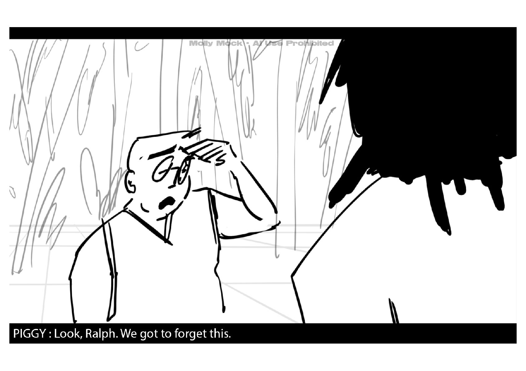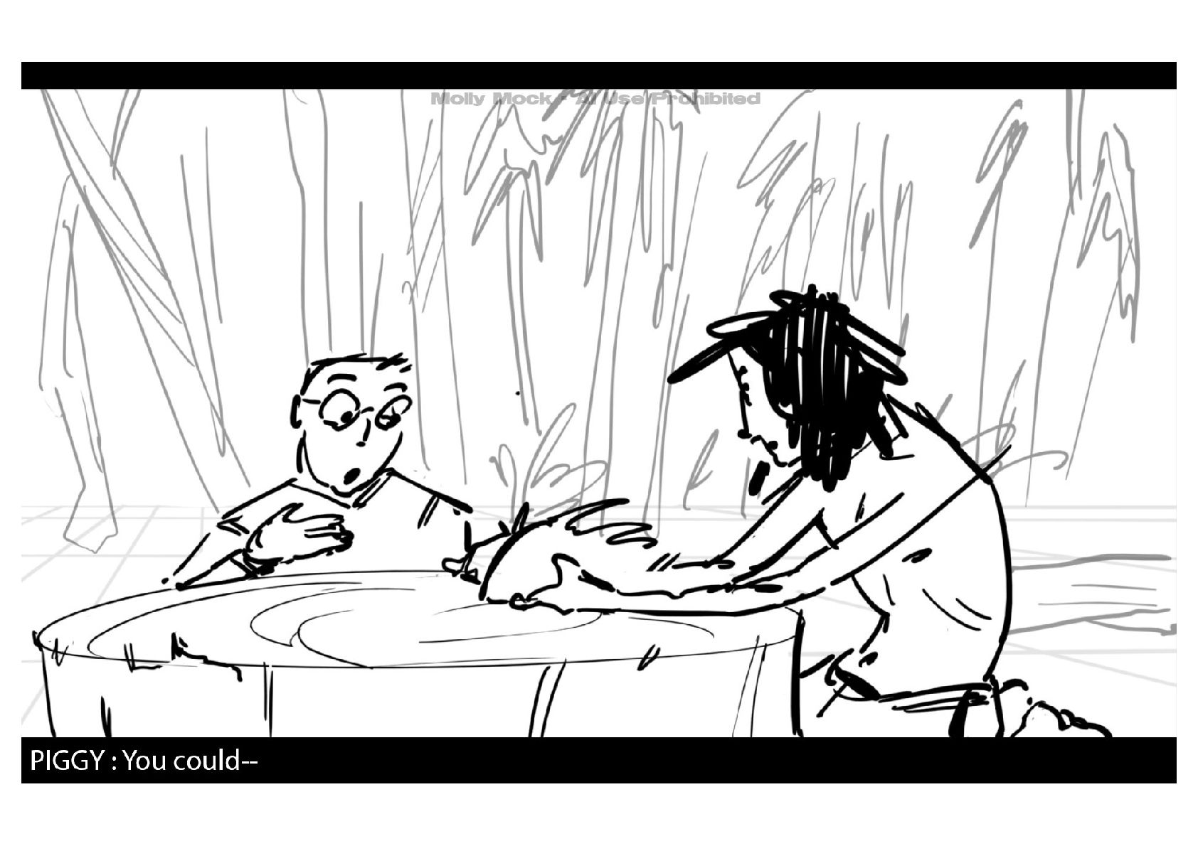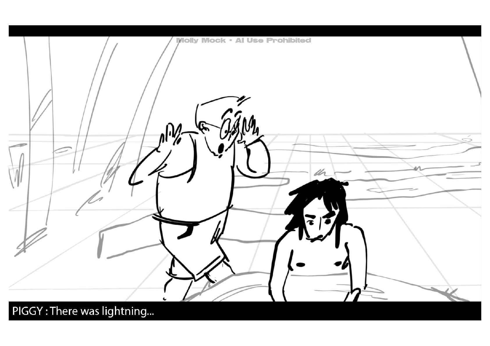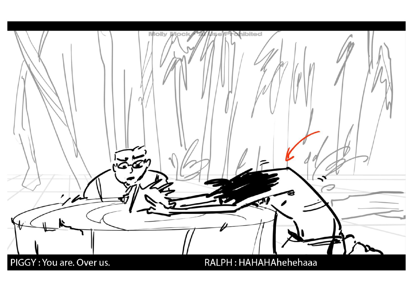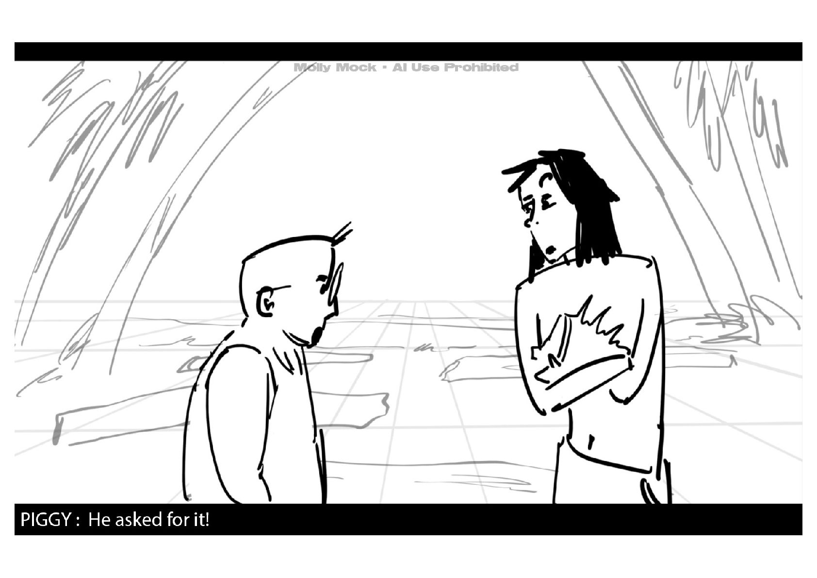 A storyboard adaptation of the first five pages of Chapter 10 in Lord of the Flies by William Golding.