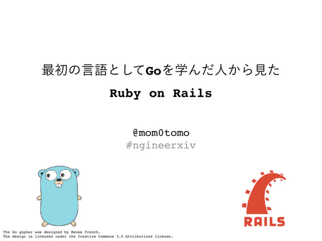 ࠷ॳͷݴޠͱͯ͠GoΛֶΜͩਓ͔Βݟͨ Ruby on Rails @mom0tomo #ngineerxiv The Go gopher was