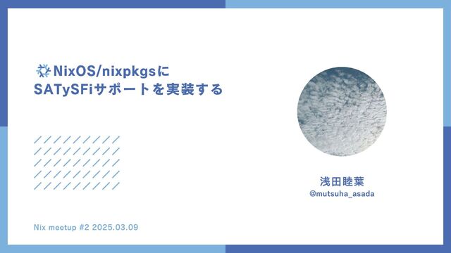 NixOS/nixpkgsに SATySFiサポートを実装する Nix meetup #2 2025.03.09 浅田睦葉 @mutsuha_asada