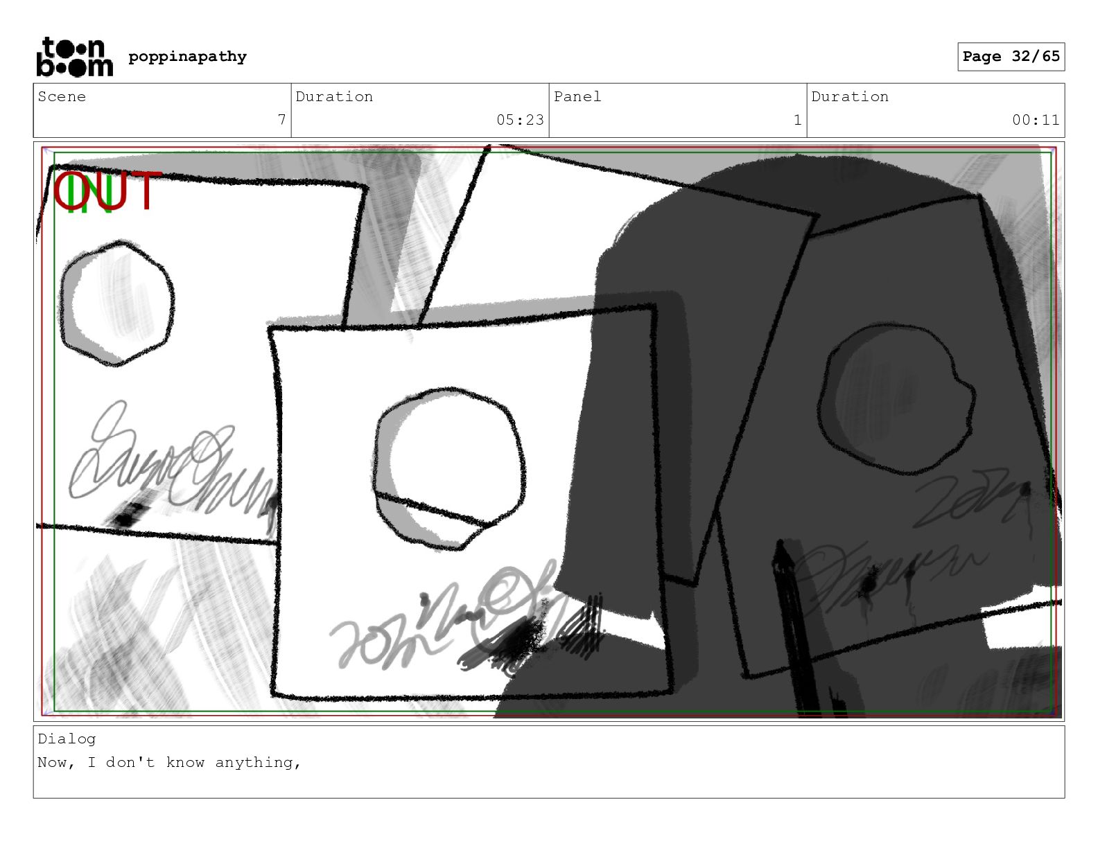 Scene 9 Duration 04:11 Panel 7 Duration 00:11 Dialog I