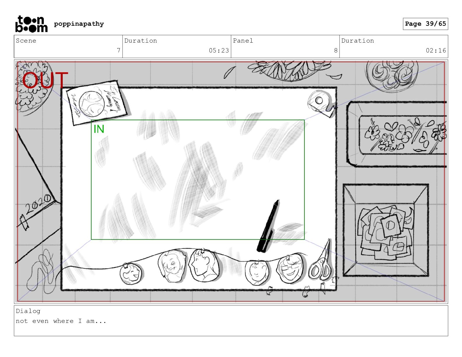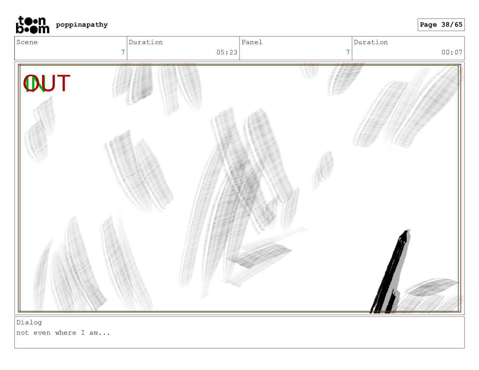 Scene 7 Duration 05:23 Panel 7 Duration 00:07 Dialog not
