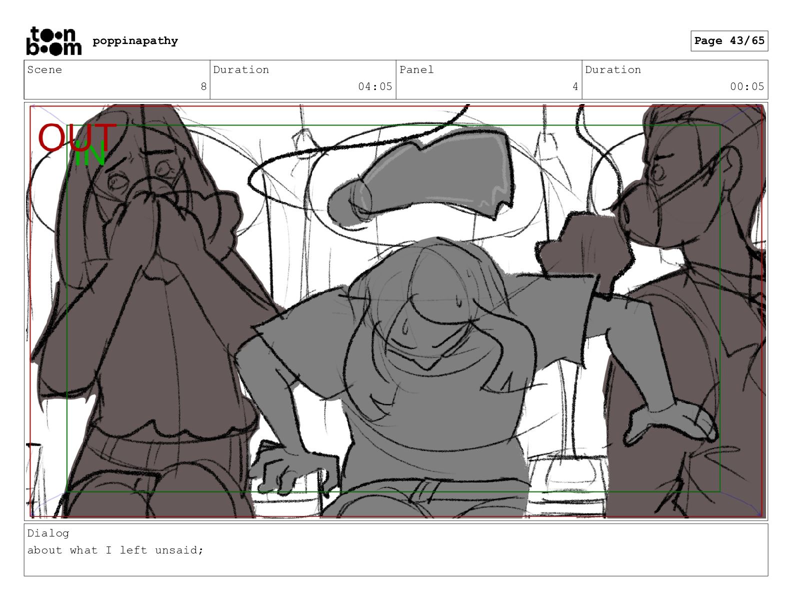 Scene 8 Duration 04:05 Panel 4 Duration 00:05 Dialog about