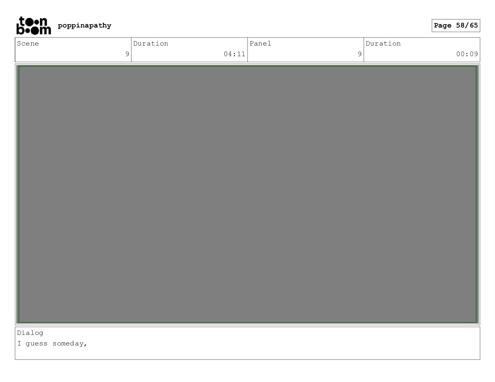 Scene 9 Duration 04:11 Panel 9 Duration 00:09 Dialog I