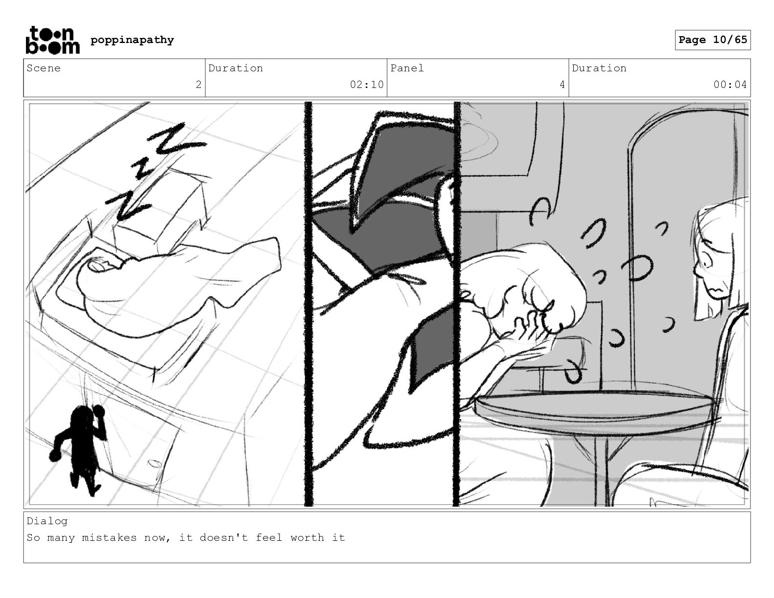 Scene 2 Duration 02:10 Panel 3 Duration 00:08 Dialog So