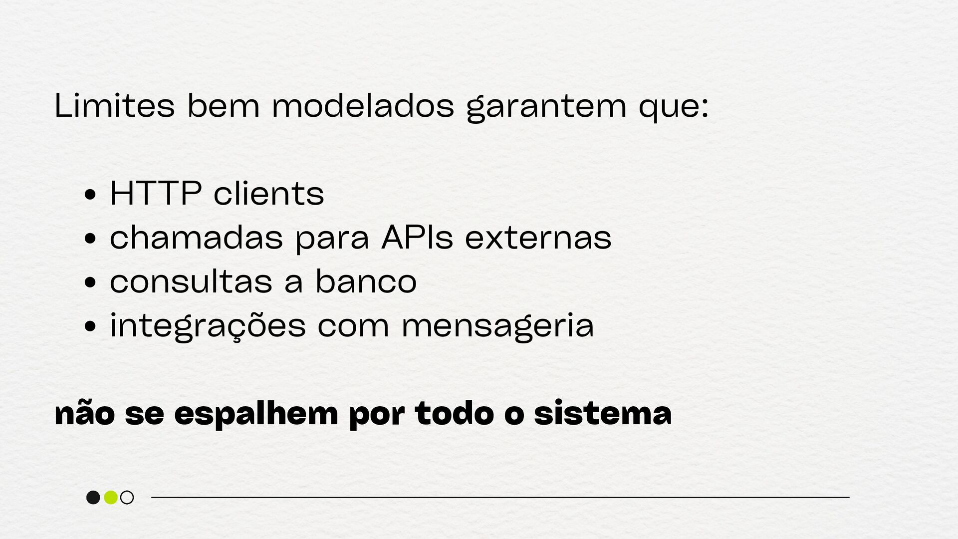 9. Limites bem modelados garantem que: HTTP clients chamadas para APIs
