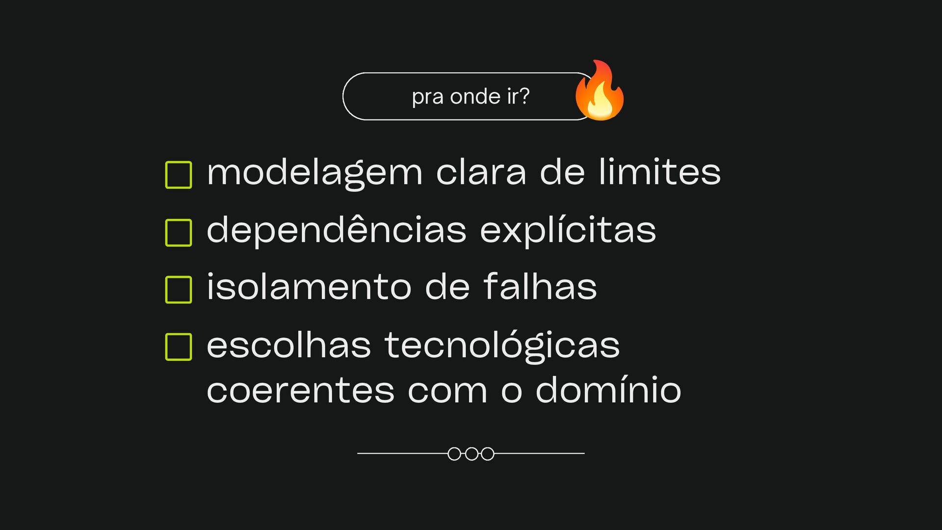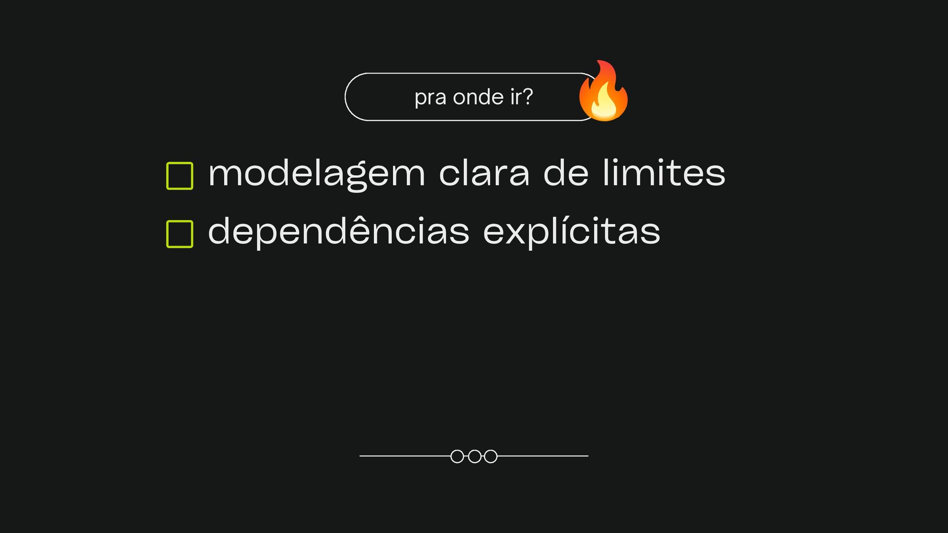 11. modelagem clara de limites pra onde ir? dependências explícitas isolamento