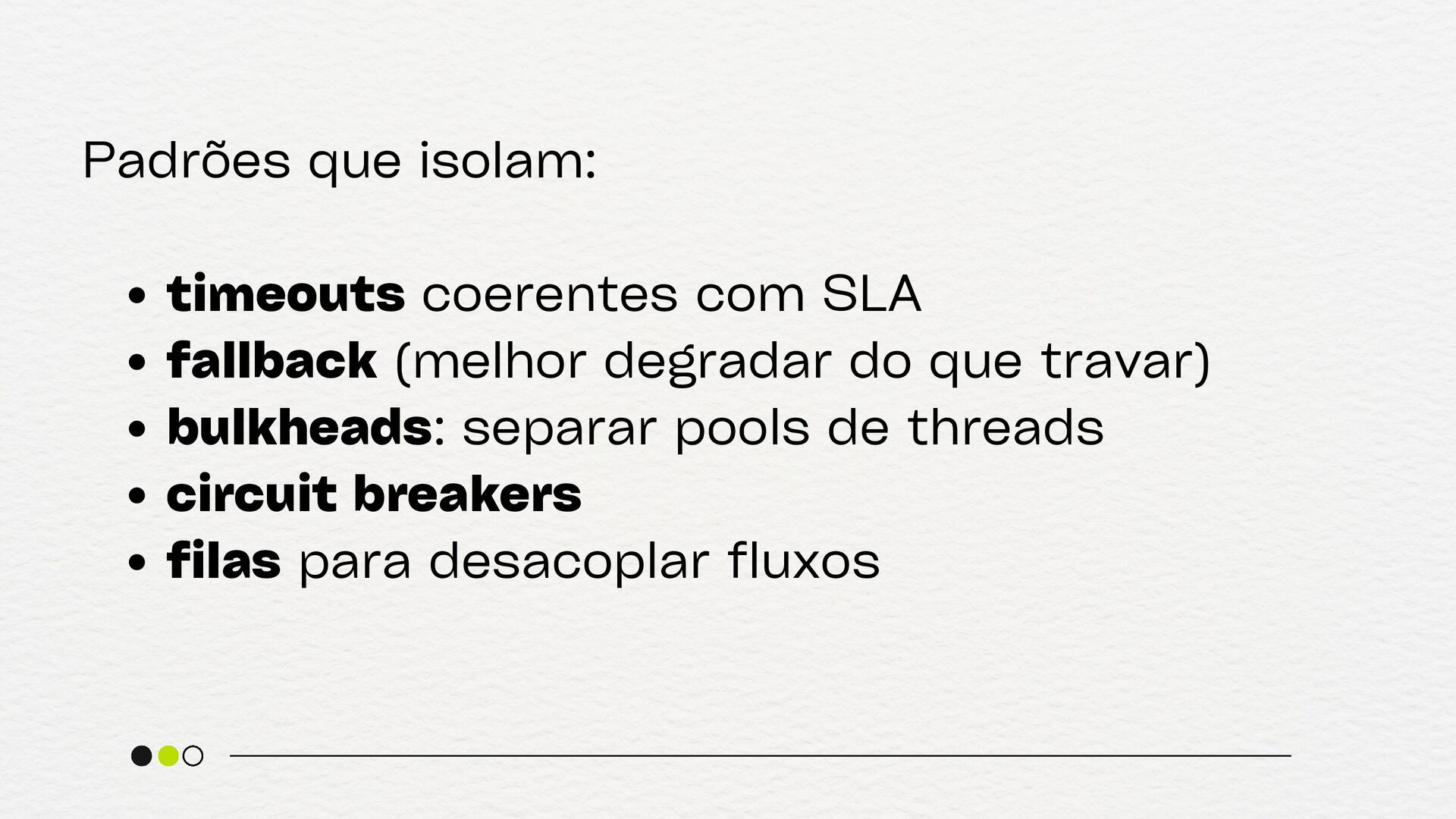 do que travar) bulkheads: separar pools de threads circuit breakers filas para desacoplar fluxos