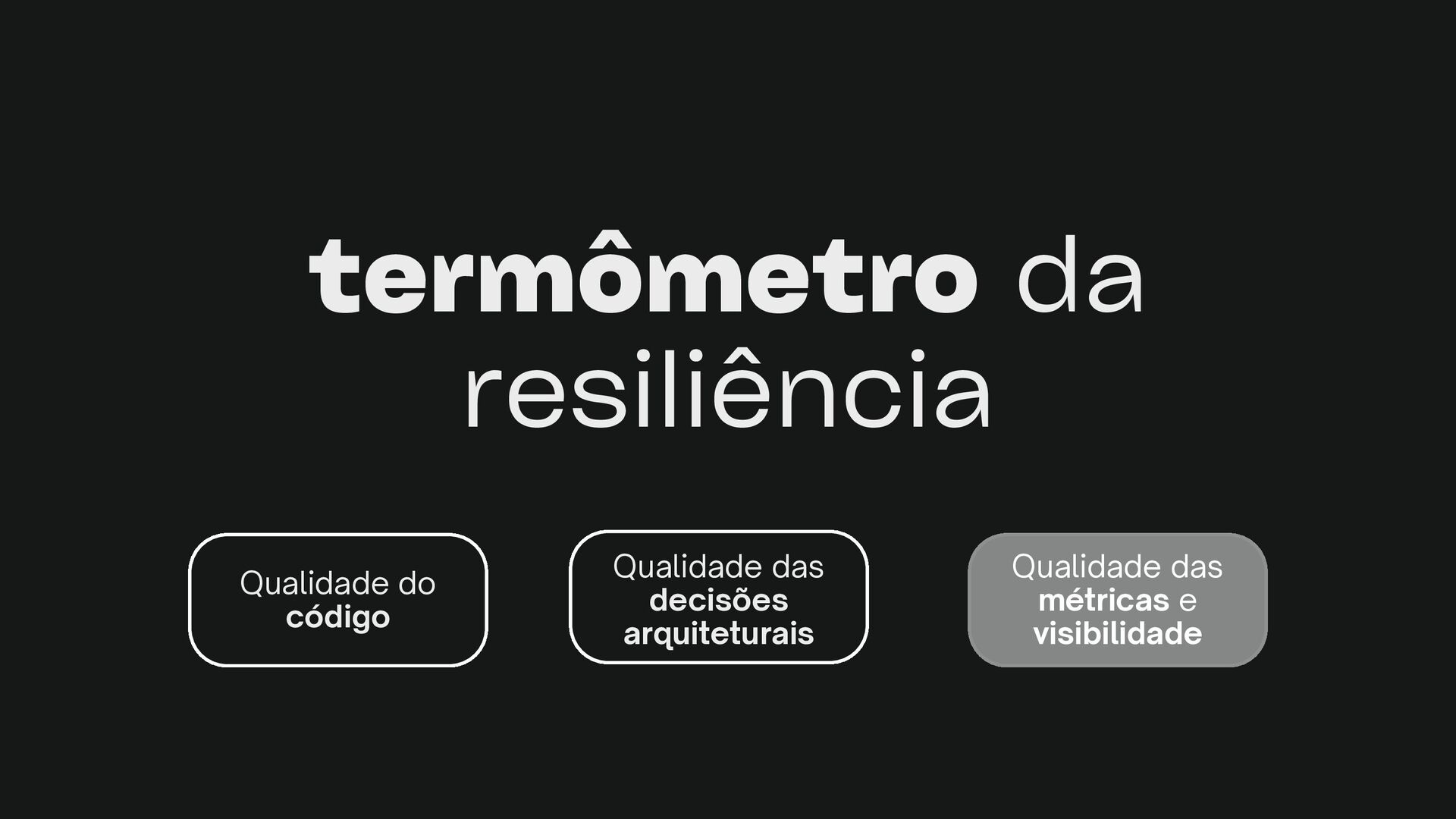 DE CÓDIGO Métricas dos padrões de resiliência Métricas de negócio: Volumes processados Falhas por steps SLA por operação O que o usuário/cliente percebe: Latência (p50, p95, p99) Throughput Erros (4xx, 5xx) Tempo de fila