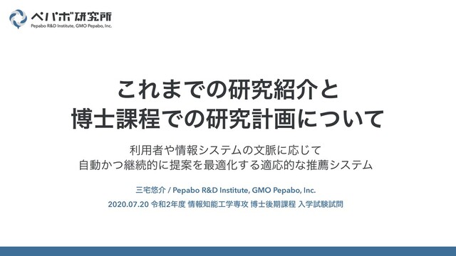 ར༻ऀใγεςϜͷจ຺ʹԠͯ͡ ࣗಈ͔ͭܧଓతʹఏҊΛ࠷దԽ͢ΔదԠతͳਪનγεςϜ ࡾ༔հ / Pepabo R&D Institute, GMO Pepabo, Inc.
