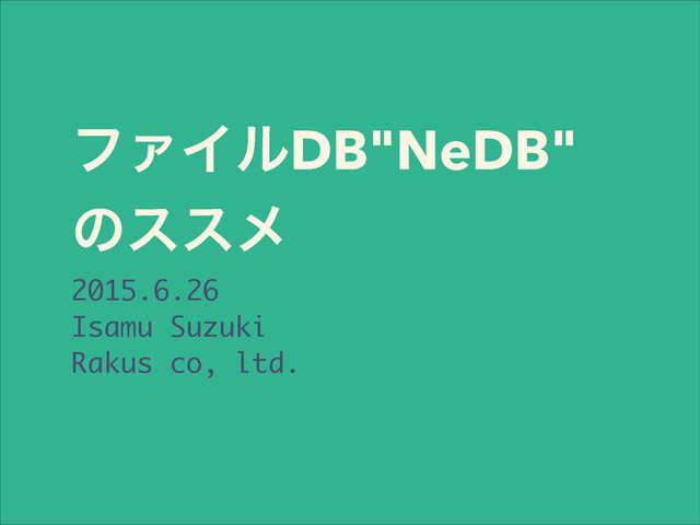 ϑΝΠϧDB"NeDB" ͷεεϝ 2015.6.26 Isamu Suzuki Rakus co, ltd.