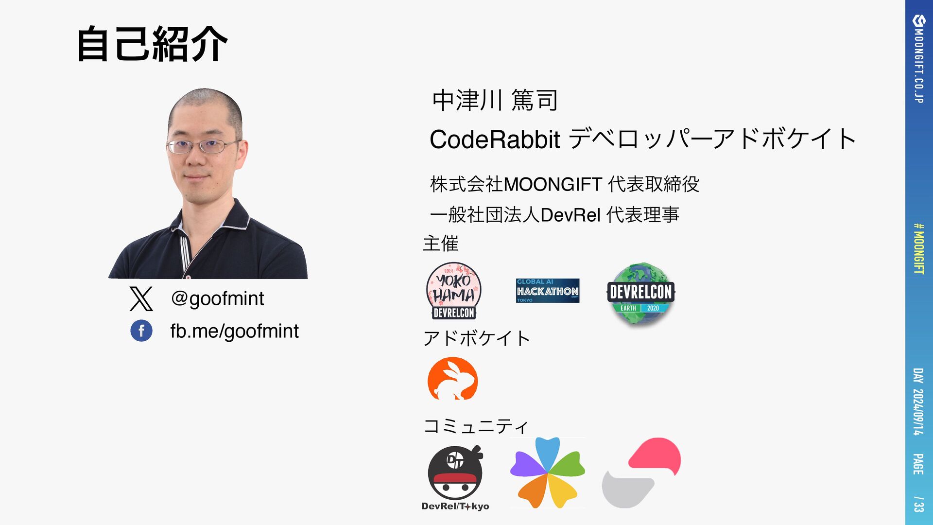 PAGE # MOONGIFT / 33 DAY 2024/09/14 最近の更新 • DevRelTokyo/devrelkaigi2025/