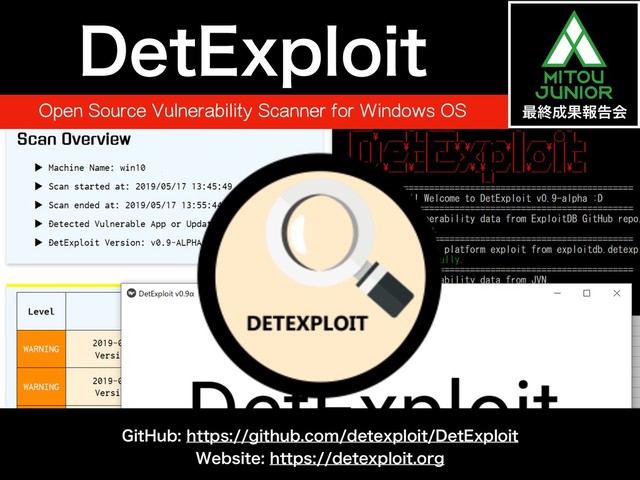 未踏ジュニア公式サイト: https://jr.mitou.org DetExploit GitHub Repository: https://github.com/detexploit/DetExploit