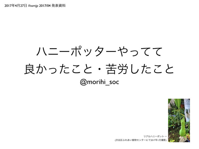 20174݄27 #ssmjp 2017/04 ൃදࢿྉ ϋχʔϙολʔͬͯͯ ྑ͔ͬͨ͜ͱɾۤ࿑ͨ͜͠ͱ @morihi_soc ϦΞϧϋχʔϙοτˠ (ौ୩۠;Ε͍͋২ηϯλʔʹͯ20171݄ࡱӨ)