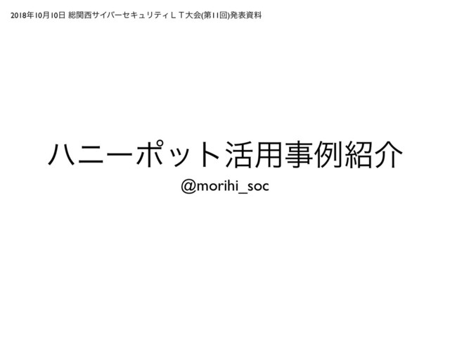 2018年10月10日 総関西サイバーセキュリティLT大会(第11回) @morihi_soc #sec_kansai #sosaisec #seckansai https://sec-kansai.connpass.com/event/98346/