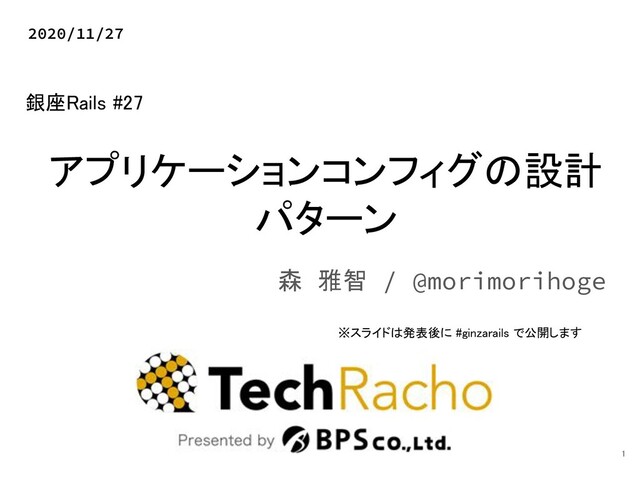 アプリケーションコンフィグの設計 パターン 森 雅智 / @morimorihoge 2020/11/27 1 銀座Rails
