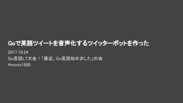 Goで英語ツイートを音声化するツイッターボットを作った 2017.10.24 Go言語LT大会!「最近、Go言語始めました」の会 @morix1500