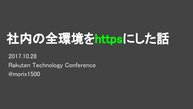 社内の全環境をhttpsにした話 2017.10.28 Rakuten Technology Conference @morix1500