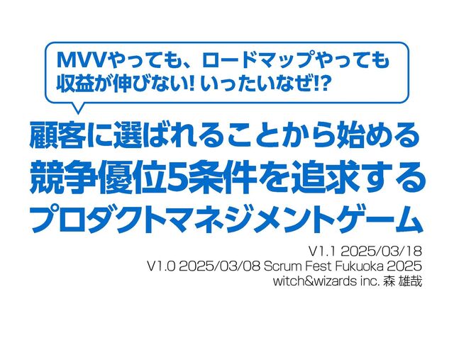 MVVやロードマップといったフレームワークを用いても、プロダクトからの収益が伸び悩むなかで、何をどのように考えたらいいのか分からなくなっているプロダクトチームに向けたセッションです。