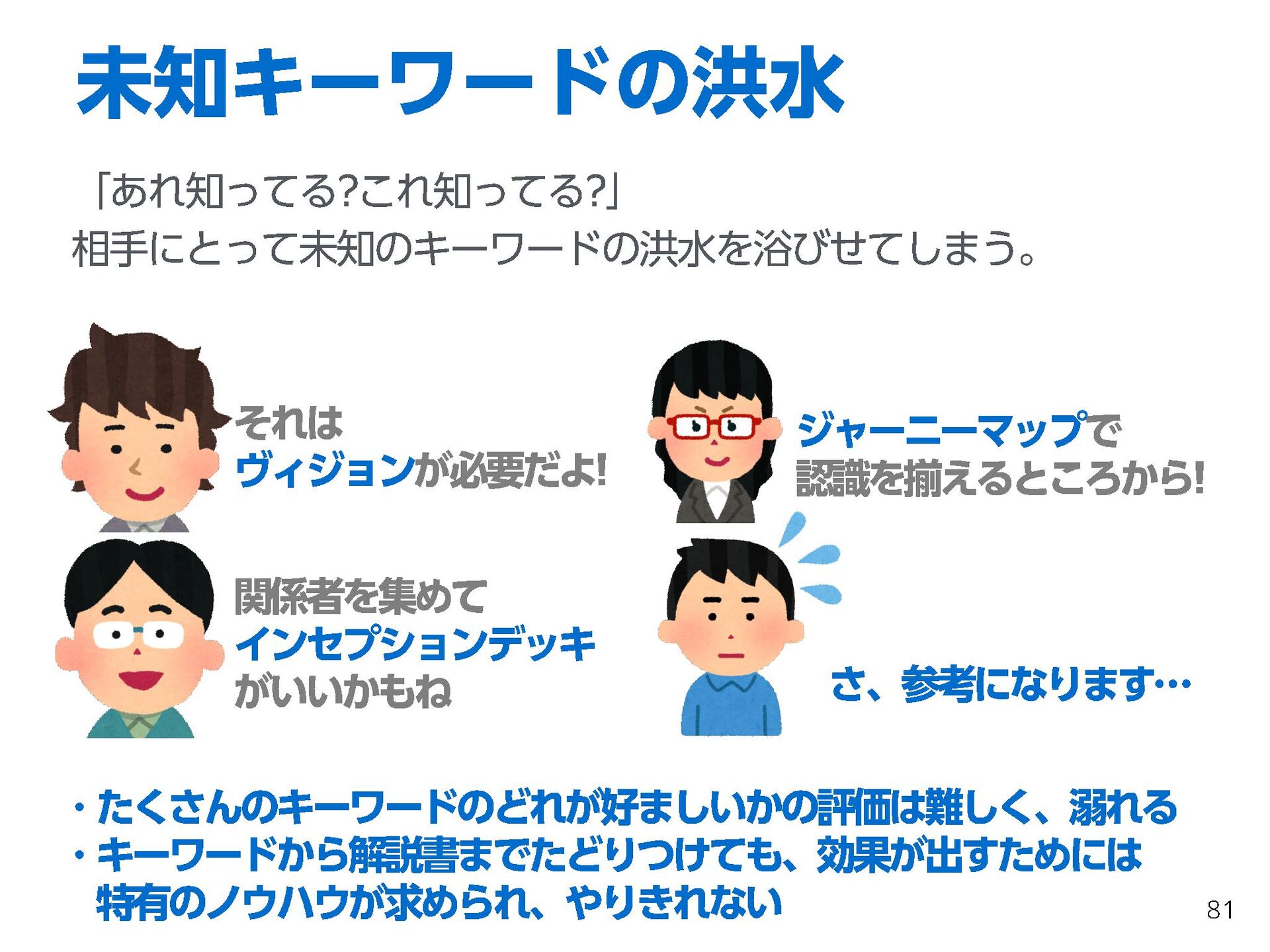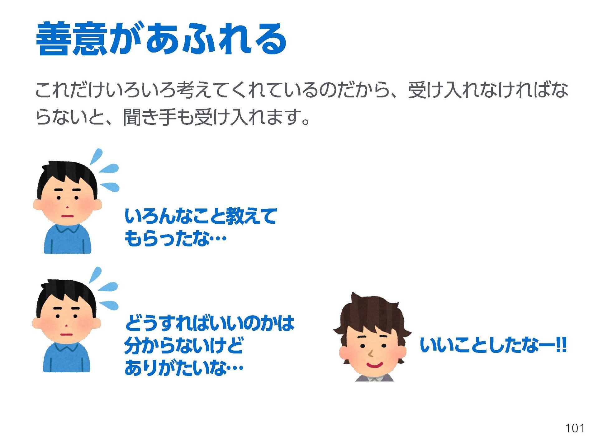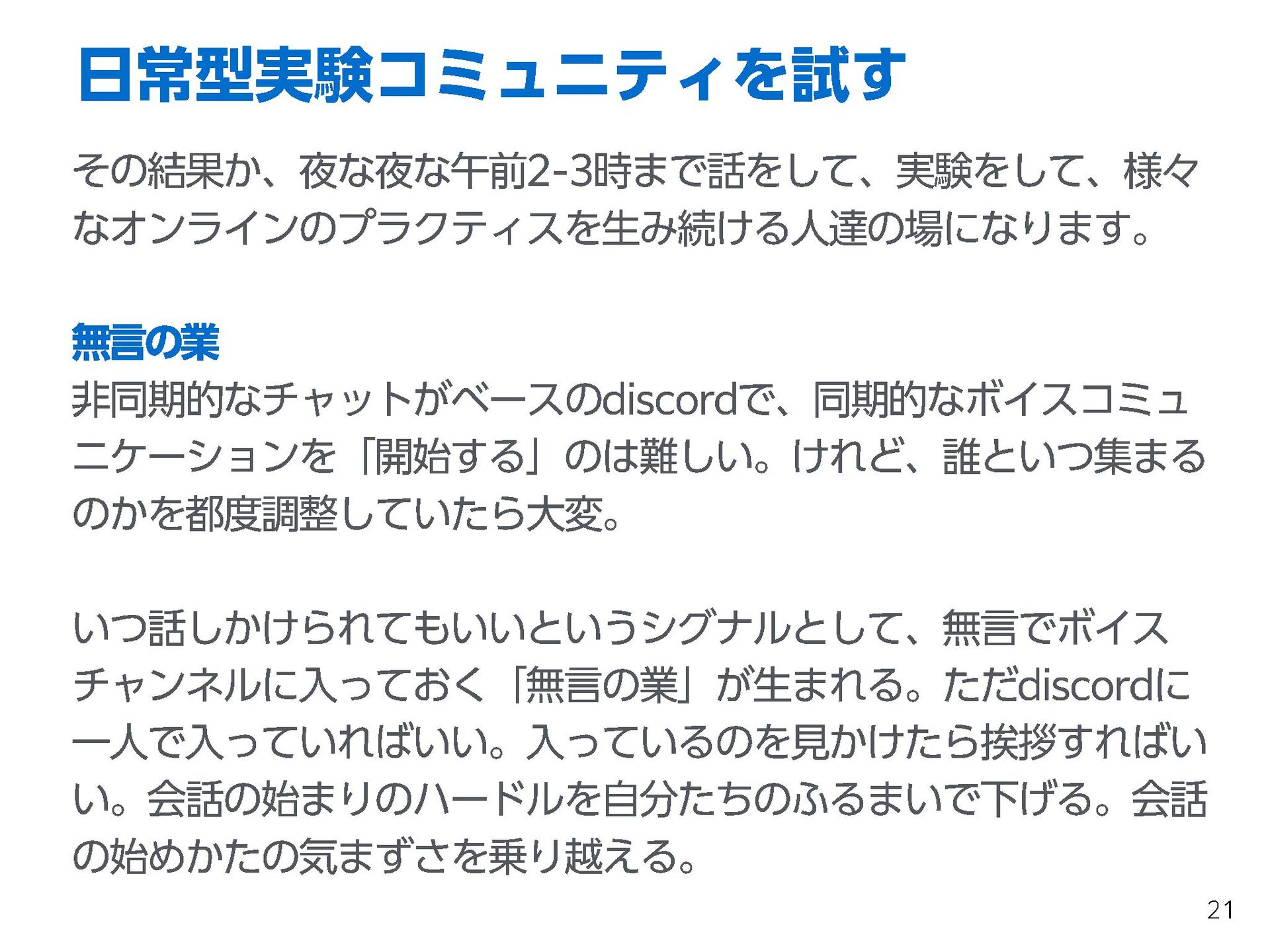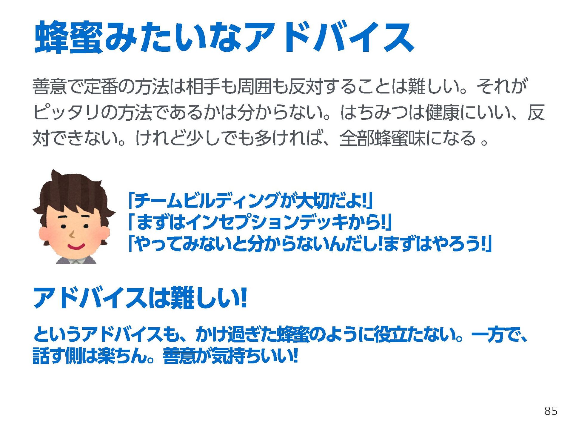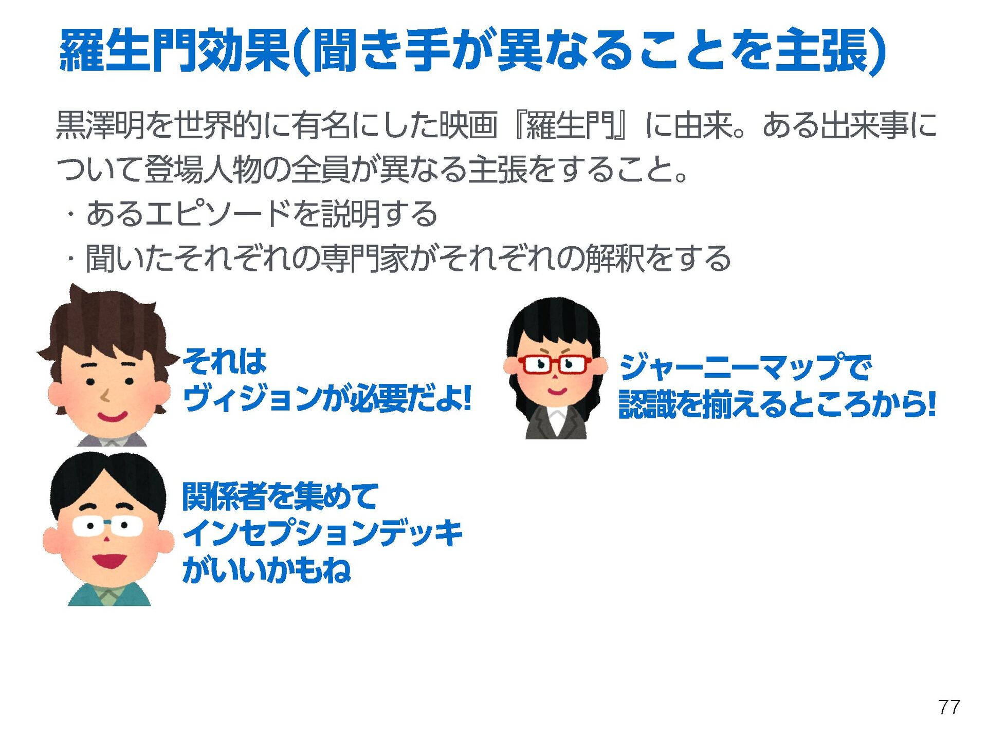これらの活動の中で、私自身が劇的と感じる体験が何度もあり、自分の考えやふるまいを見直す結果に繋がりました。この体験は問題解決の書籍を学ぶことよりも、自分にとって大きな衝撃となり、強く興味を持つようになりました。それ以後、自主開催も行い、当事者にとって劇的なアウトカムを再現する試みを行ってきました。
